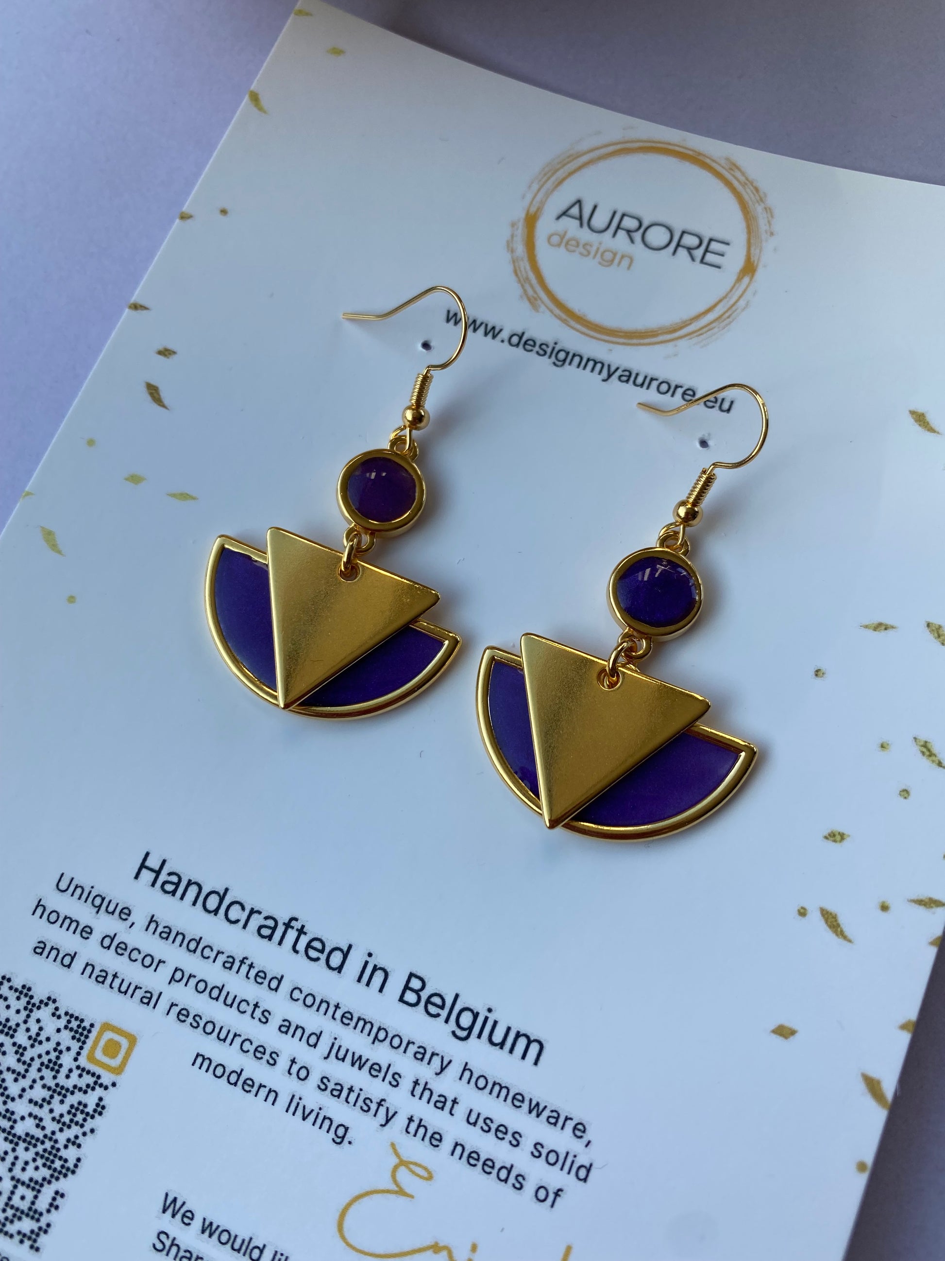 Deze geometrische oorbellen zijn gemaakt van hand gegoten milieuvriendelijke hars met ondoorzichtig pigment.