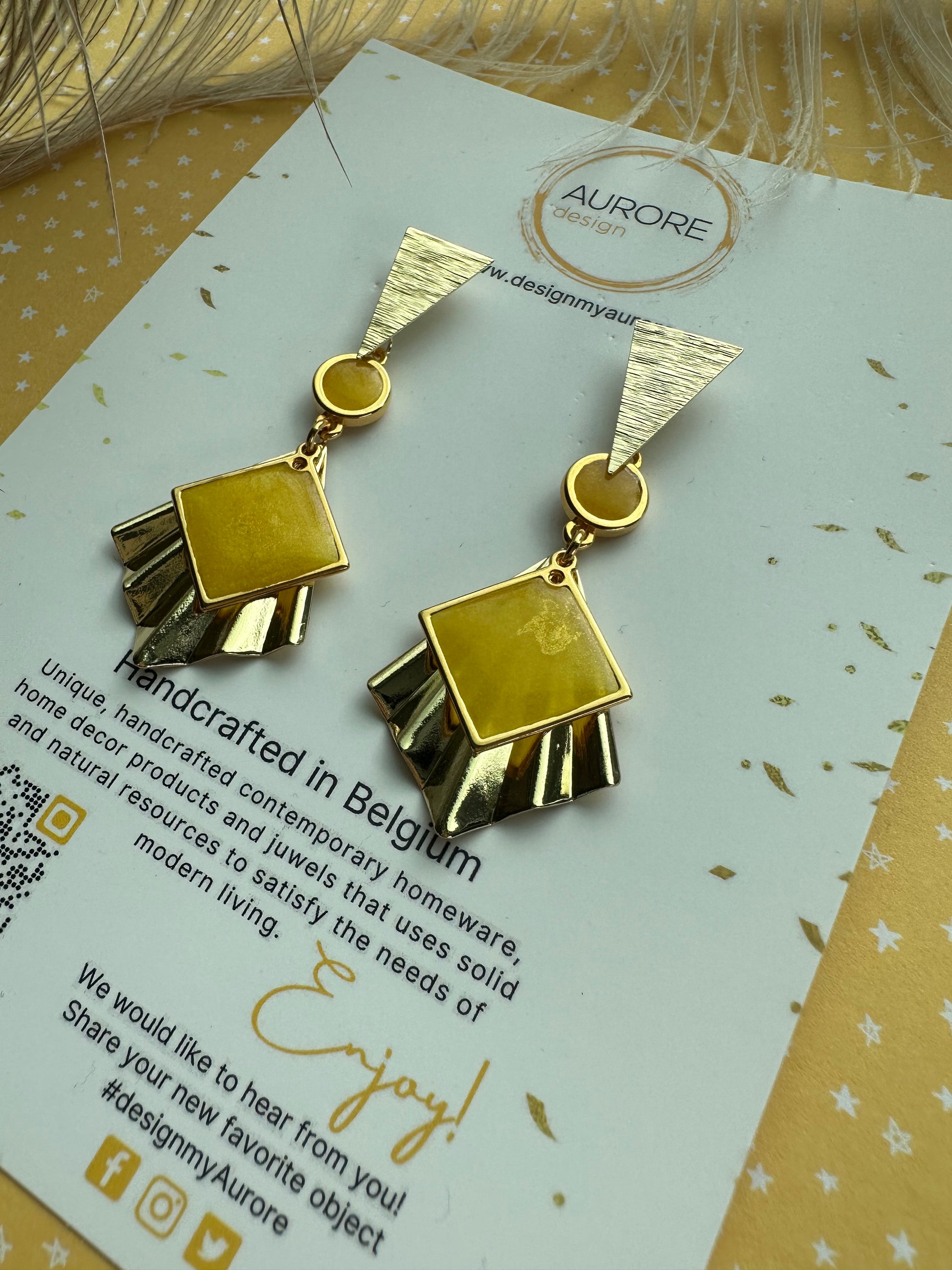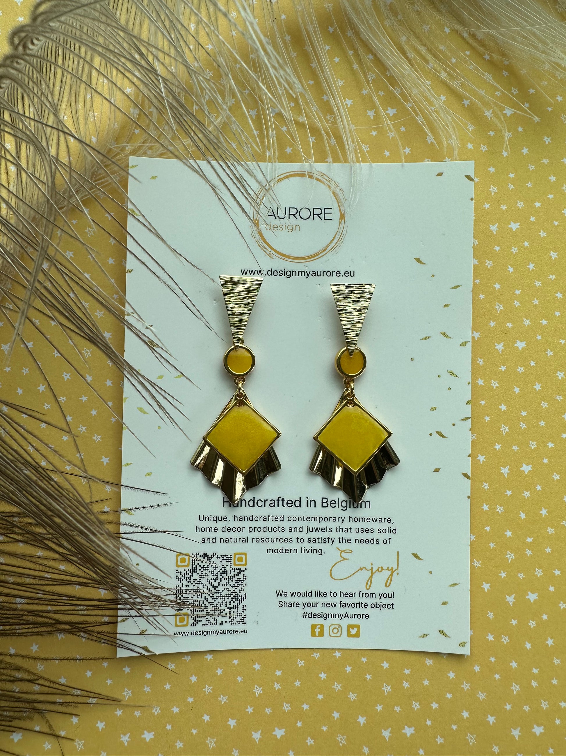 Art Nouveau geïnspireerde statement oorbellen, Geel