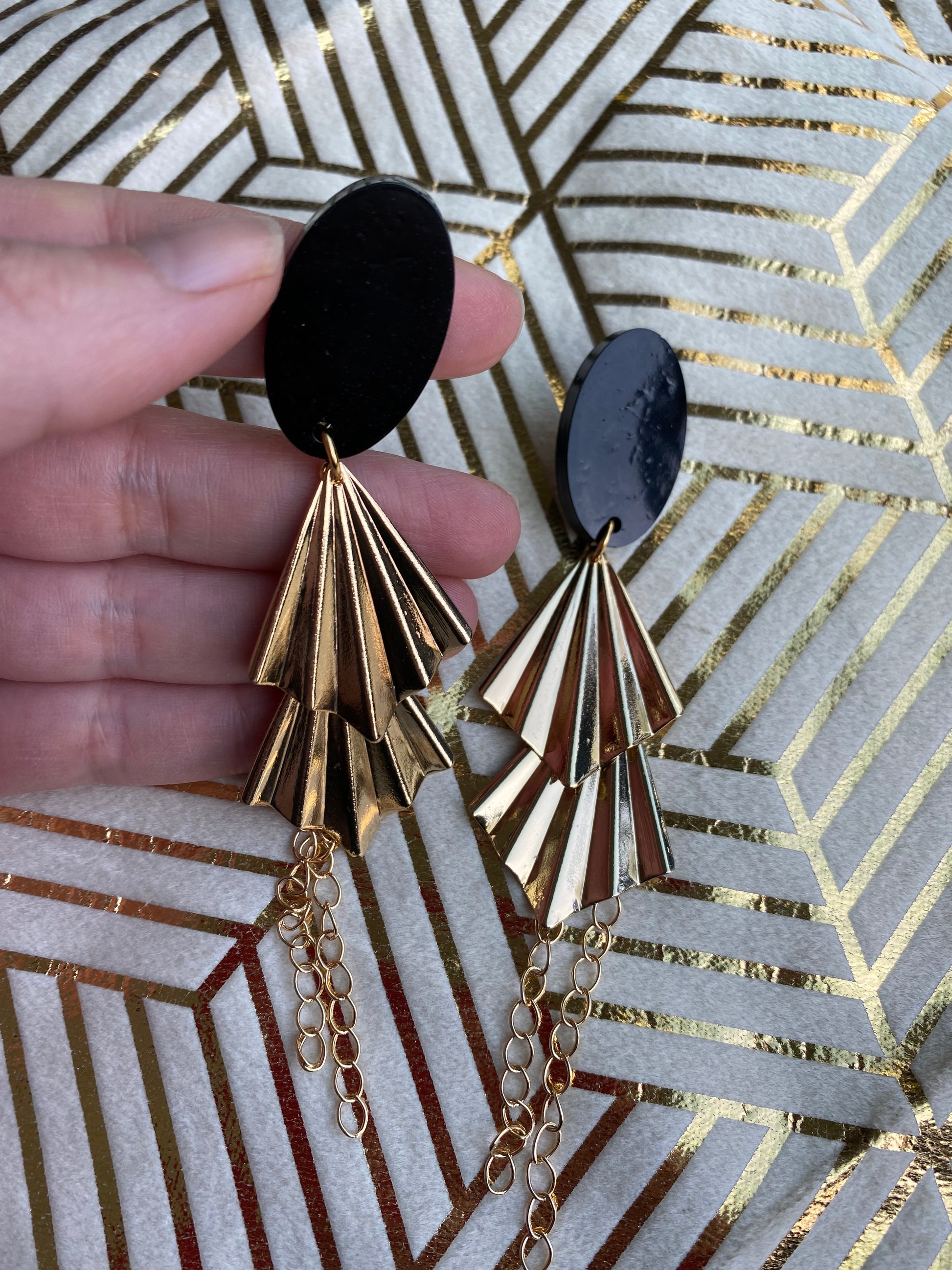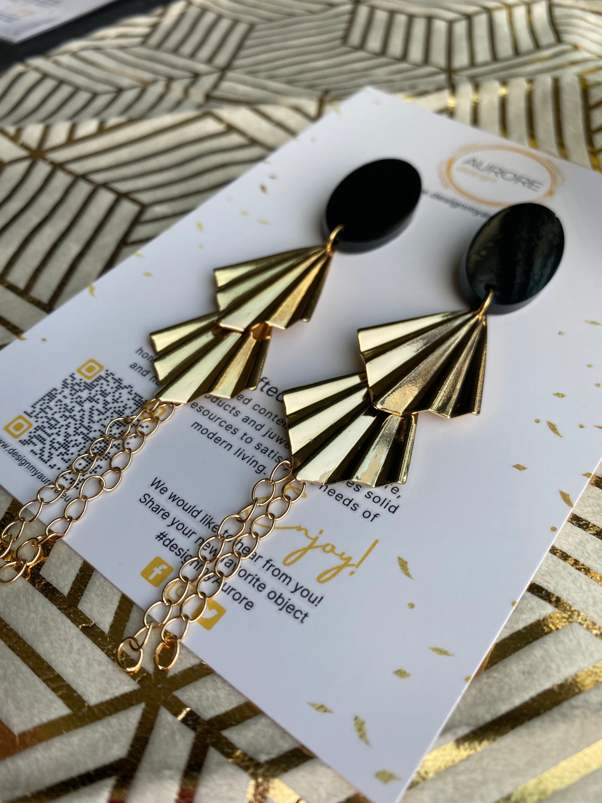 Deze geometrische oorbellen zijn gemaakt van hand gegoten milieuvriendelijke hars met zwart ondoorzichtig pigment.