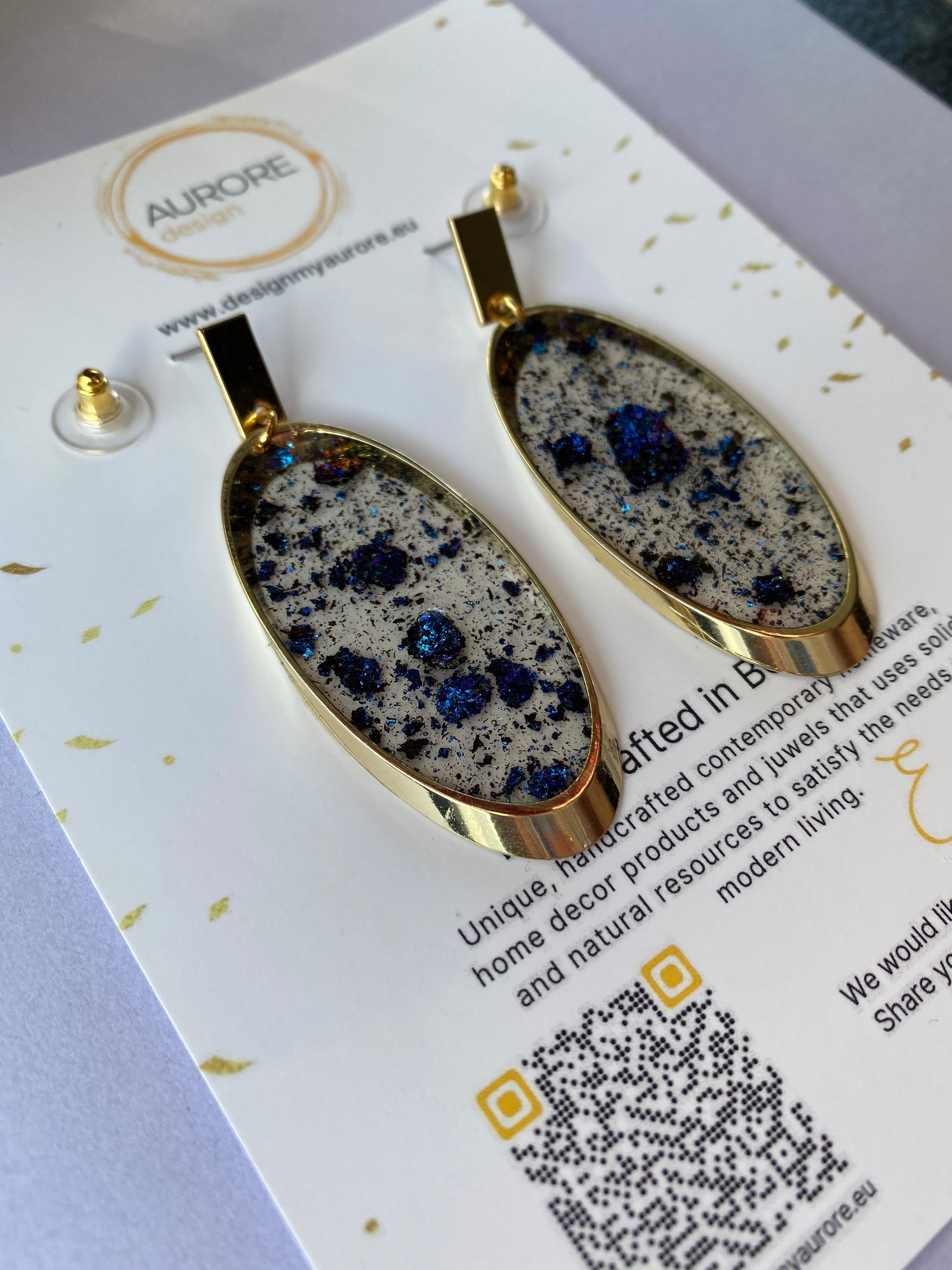 Ook deze oorbellen zijn handgemaakt, kleine variaties in de tekening kunnen voorkomen. Deze oorbellen maken onderdeel uit van de Glam lijn en komen binnenkort in verschillende kleuren.