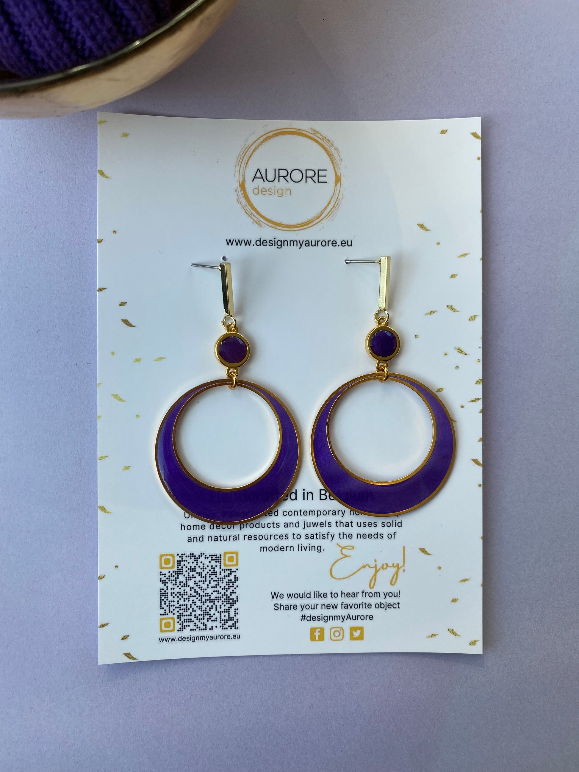 Goudkleurige hoepel oorstekers - Whoop Paars