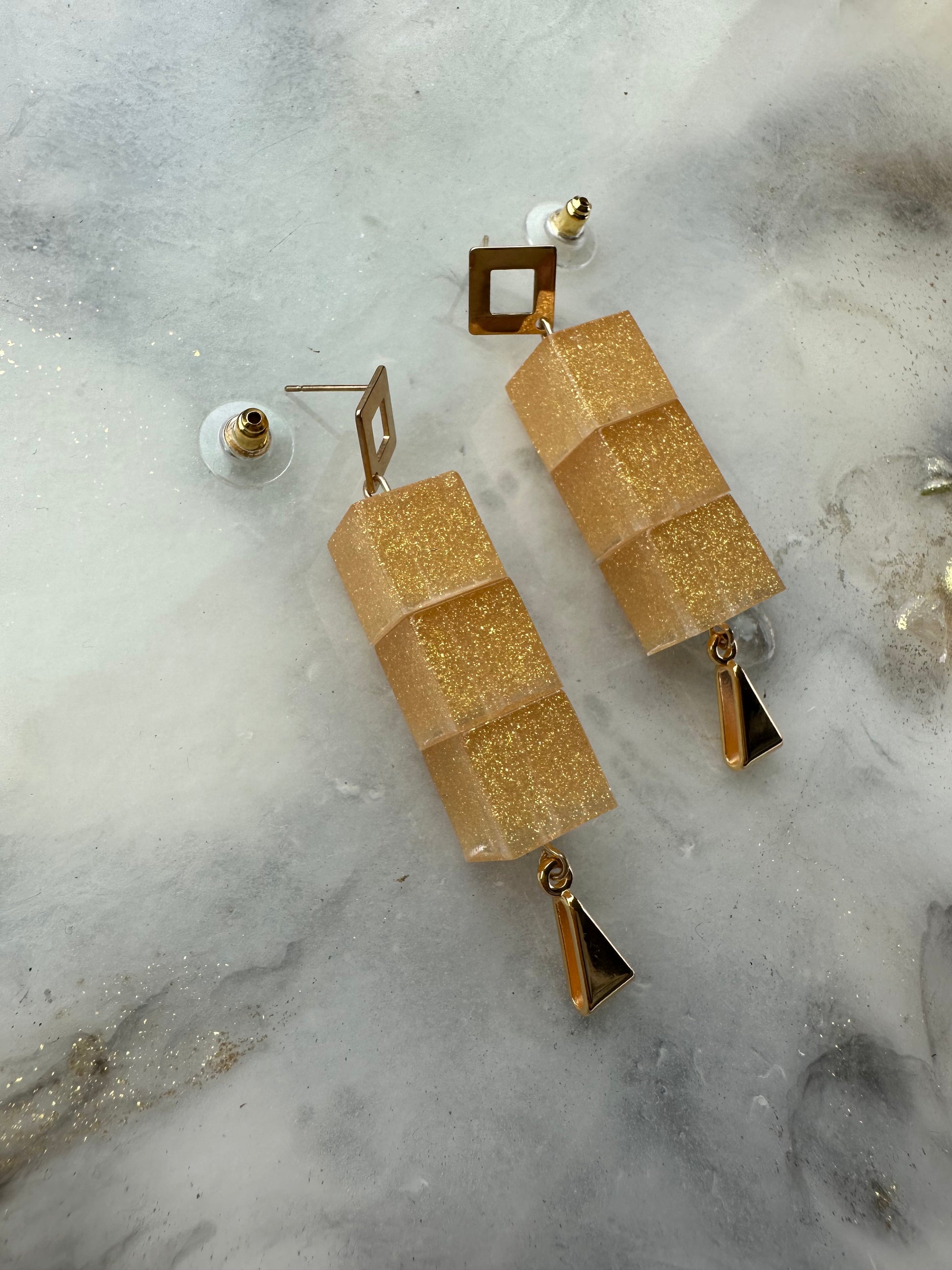 Goudkleurige oorbellen met gestapelde kubussen