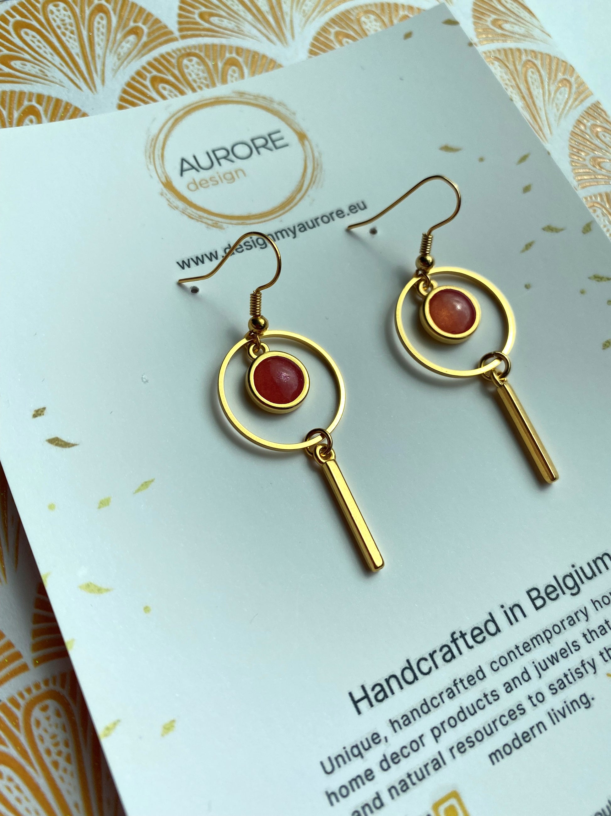 Goudkleurige oorhangers met hoepel - Hope II Roze