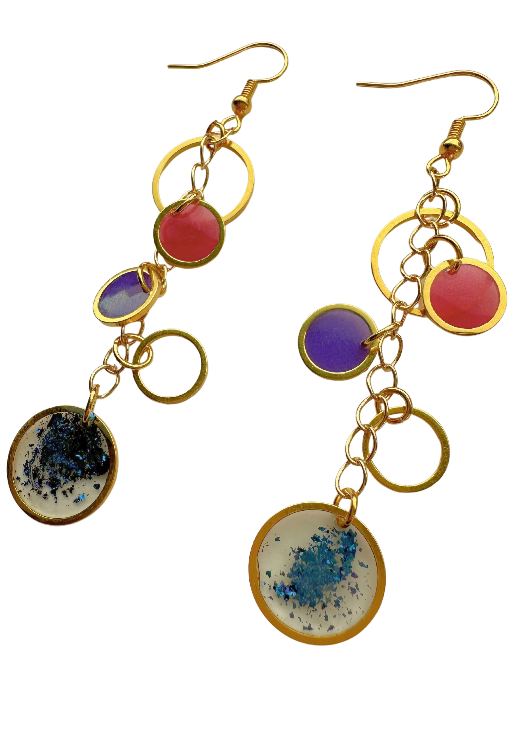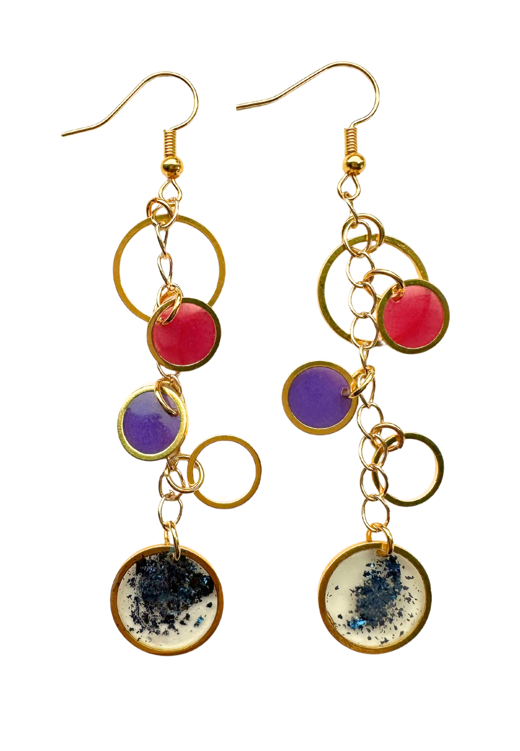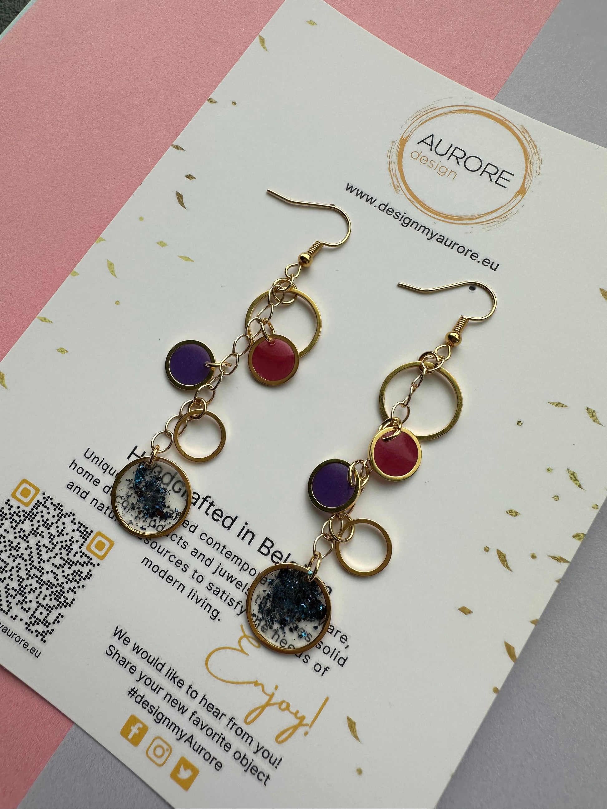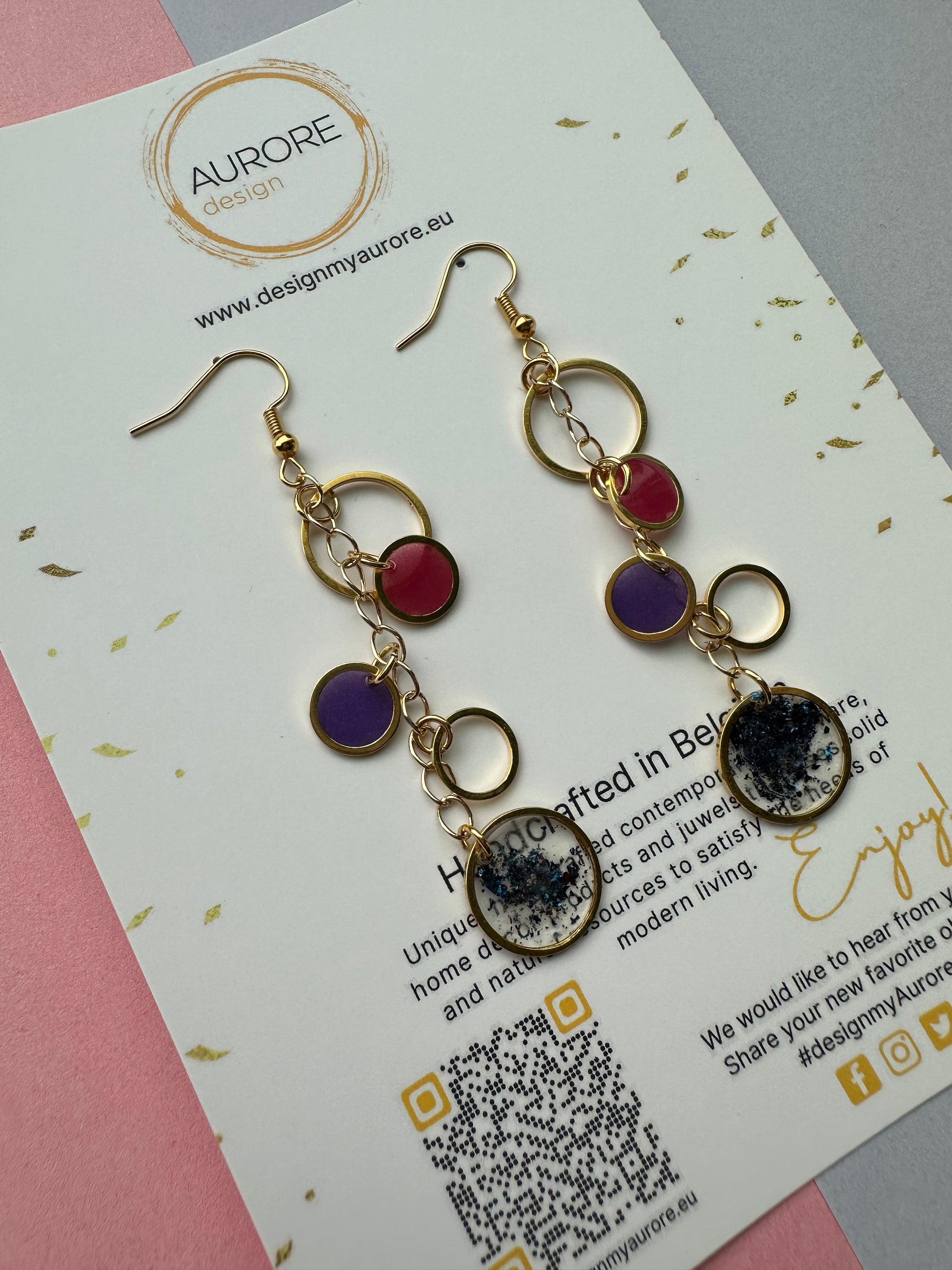 Met deze opvallende en schitterende druppelvormige oorhangers valt u overdag en 's avonds gegarandeerd op. Deze moderne versies van Boheems kralenwerk bevatten prachtige paarse en roze elementen die zijn gezet op een klassieke zetting met goudkleurige toplaag op een fijne ketting. Draag ze met opgestoken haar.