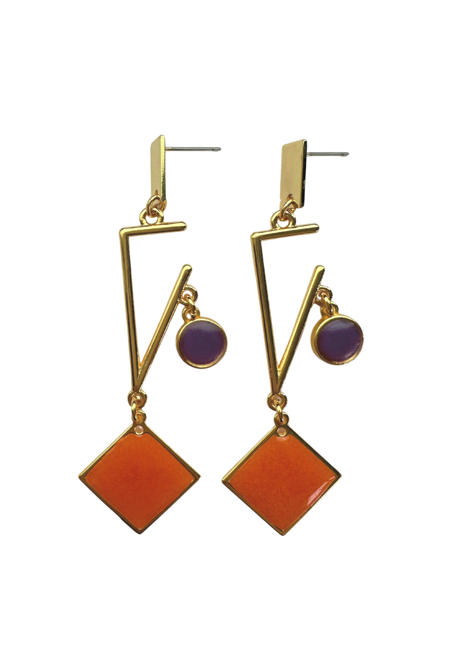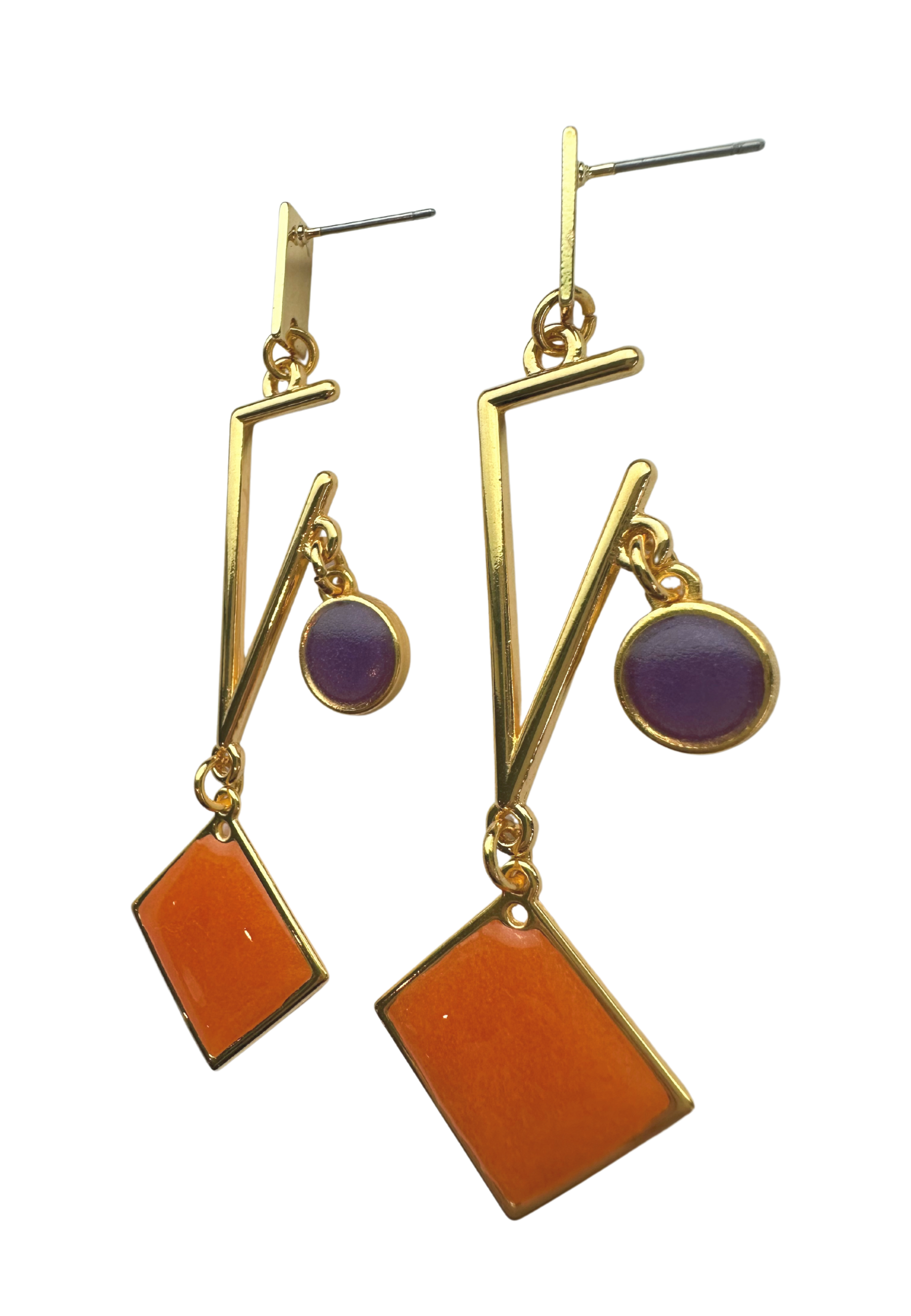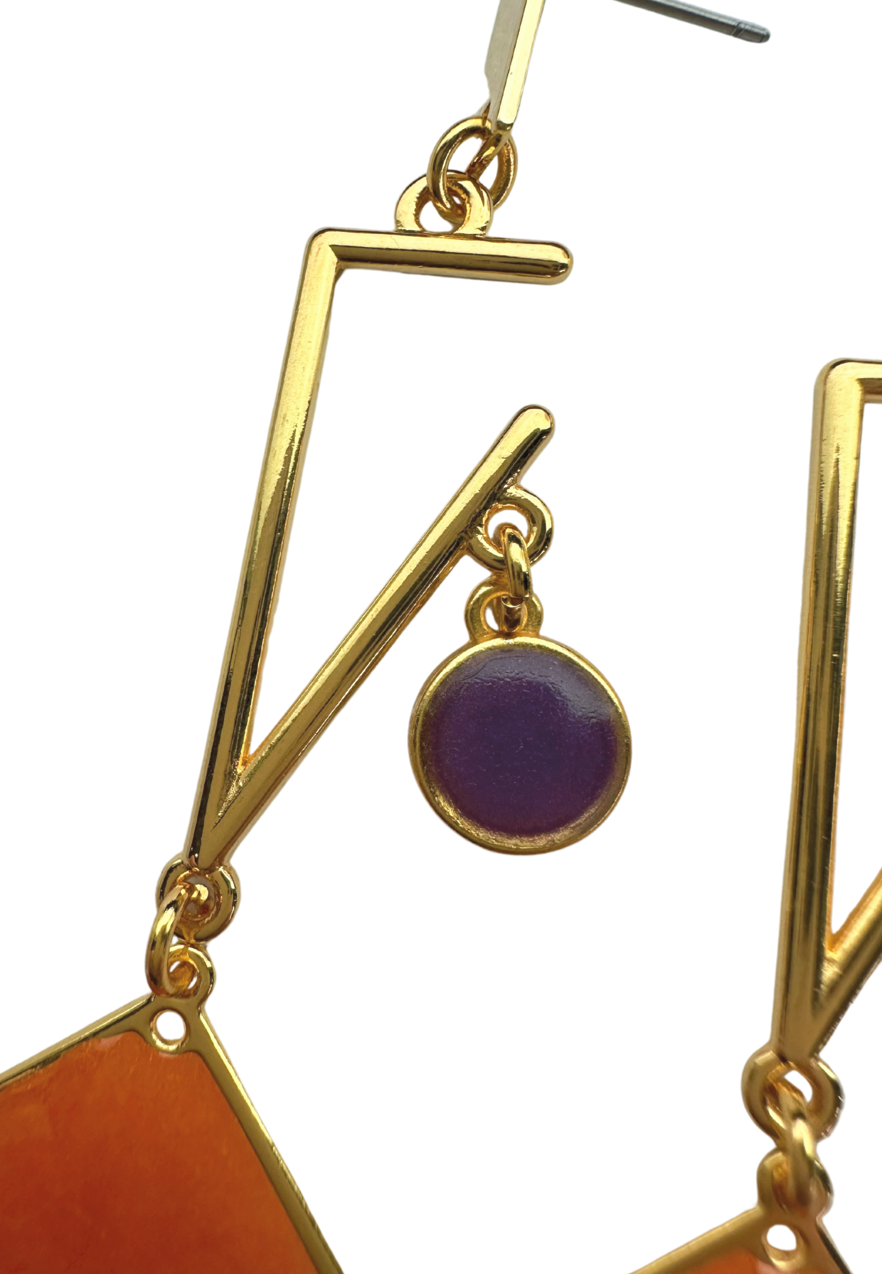Geometrische oorbellen met meerkleurige stenen - Oranje