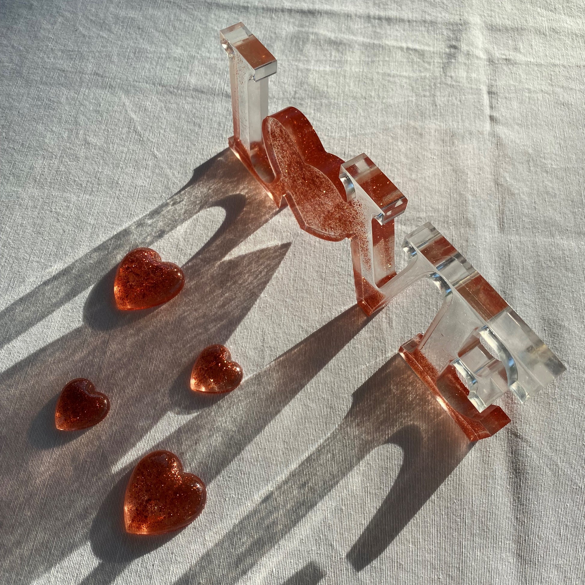 Love is in the air ... Mooi liefdesteken handgemaakt met hars, verkrijgbaar in 2 kleuren. Kan op zichzelf staan als display in elke ruimte. Display bestaat uit 1 stuk.