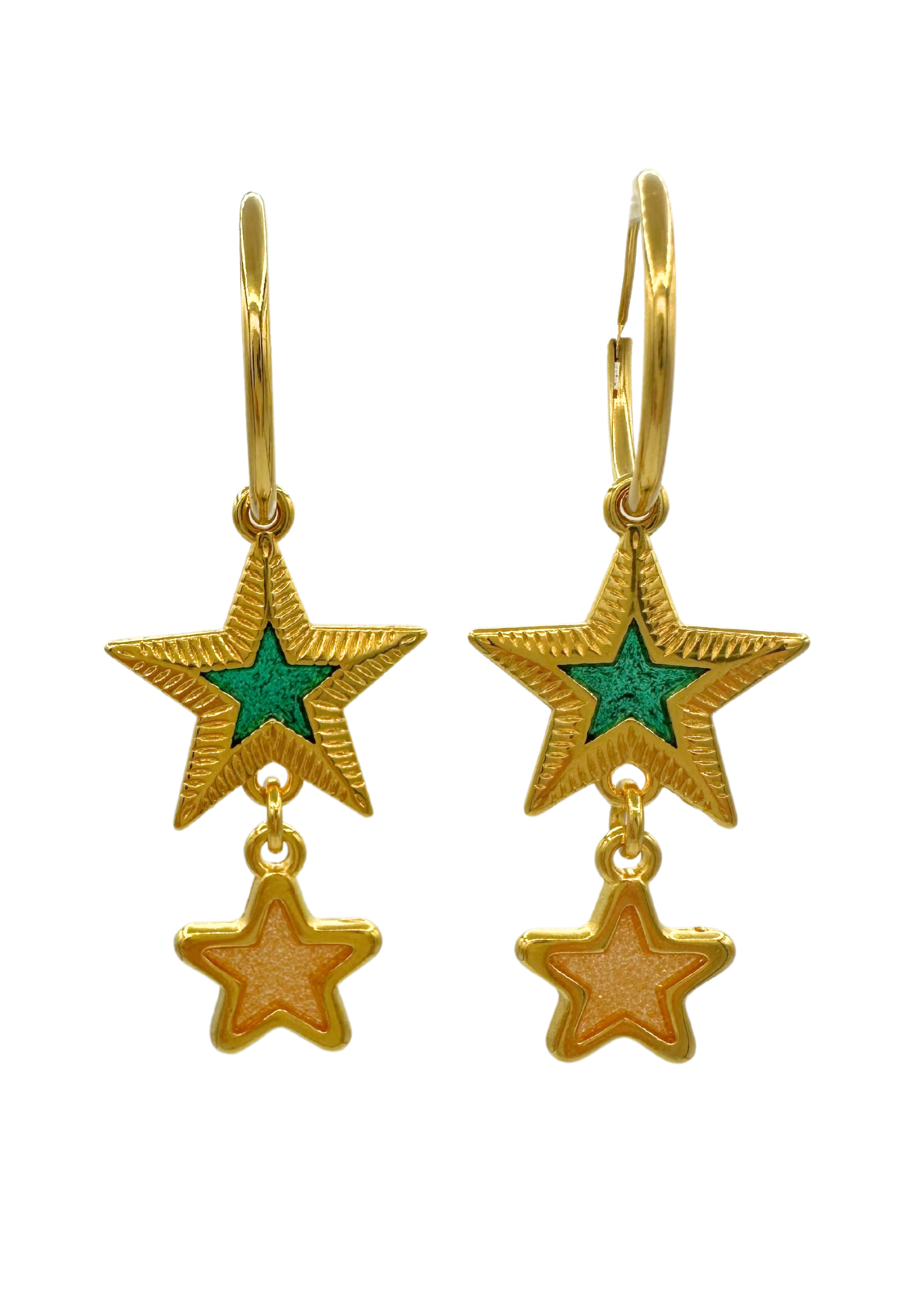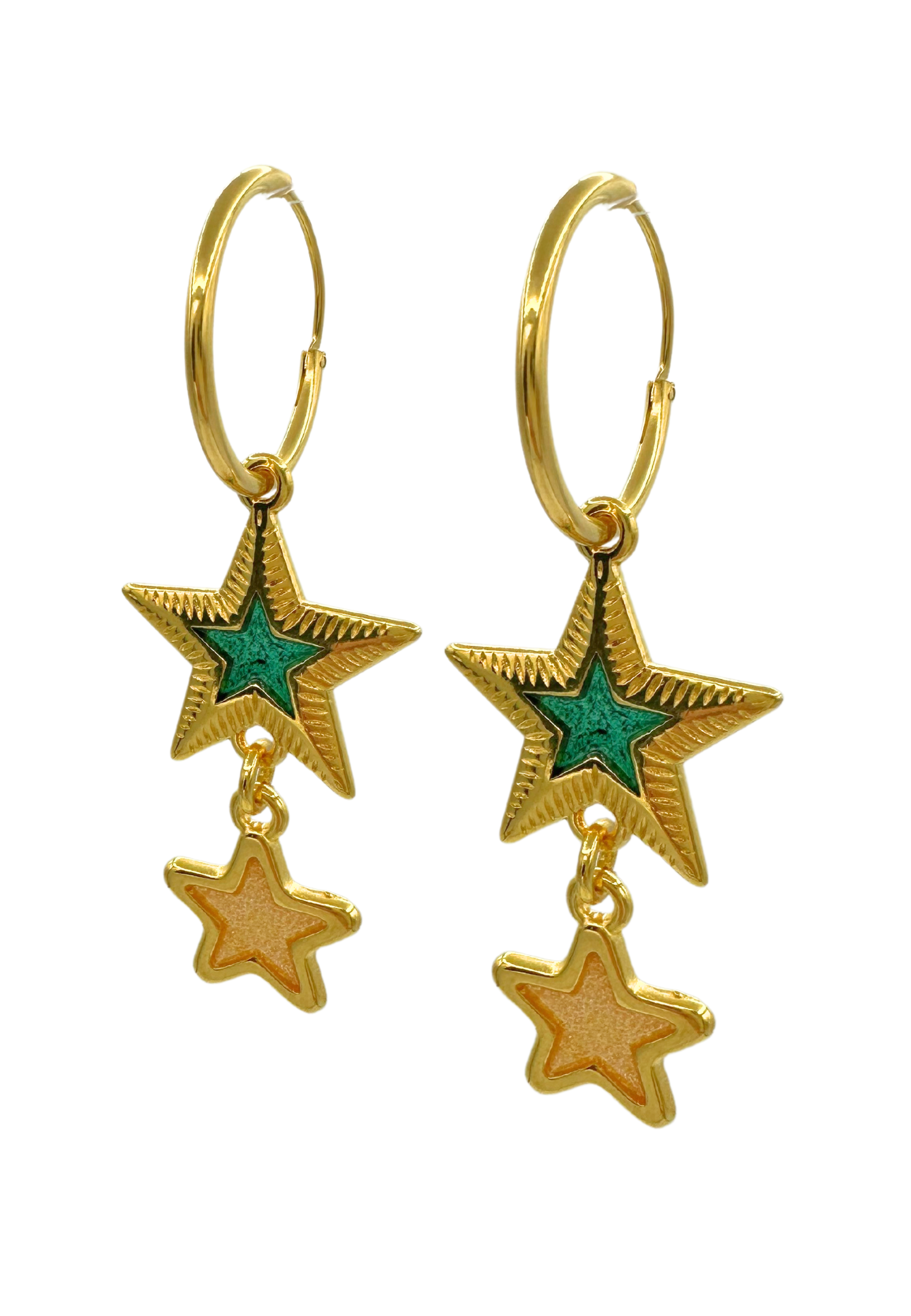 Oorringen met groene en gouden sterren