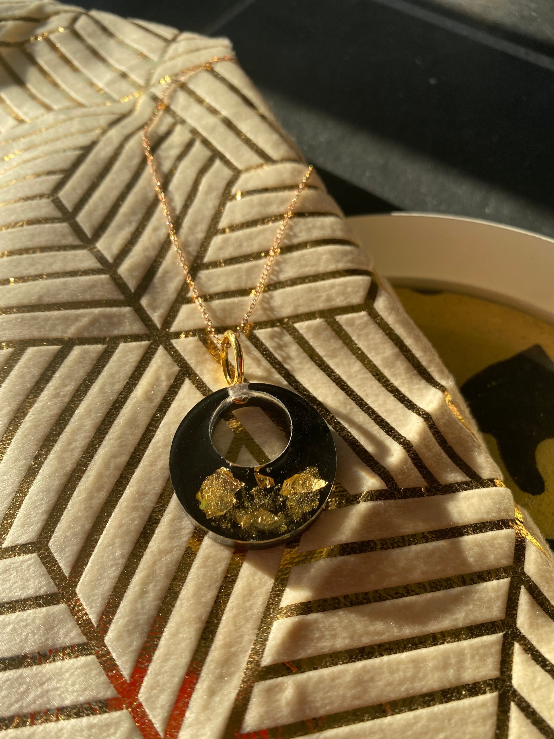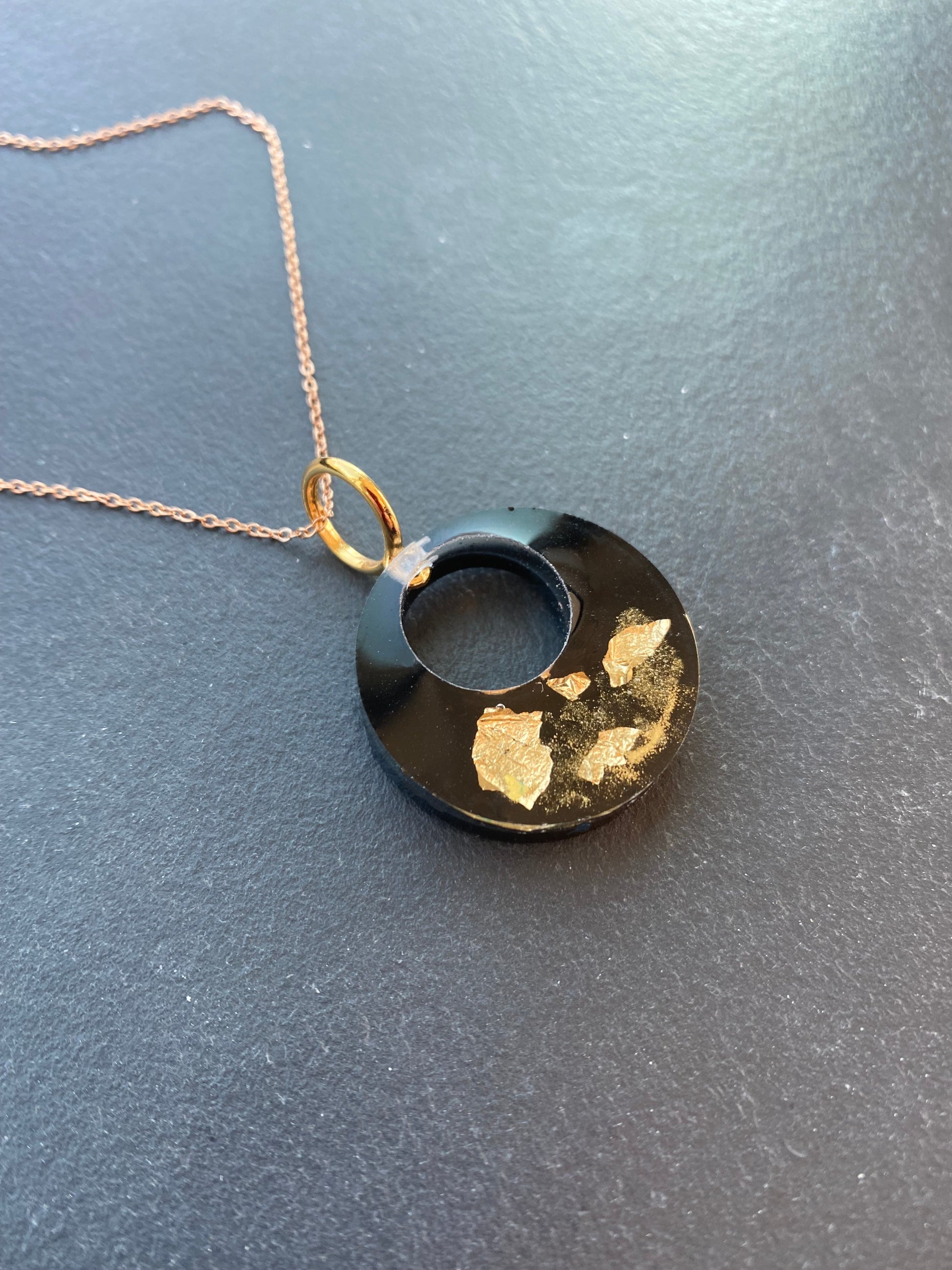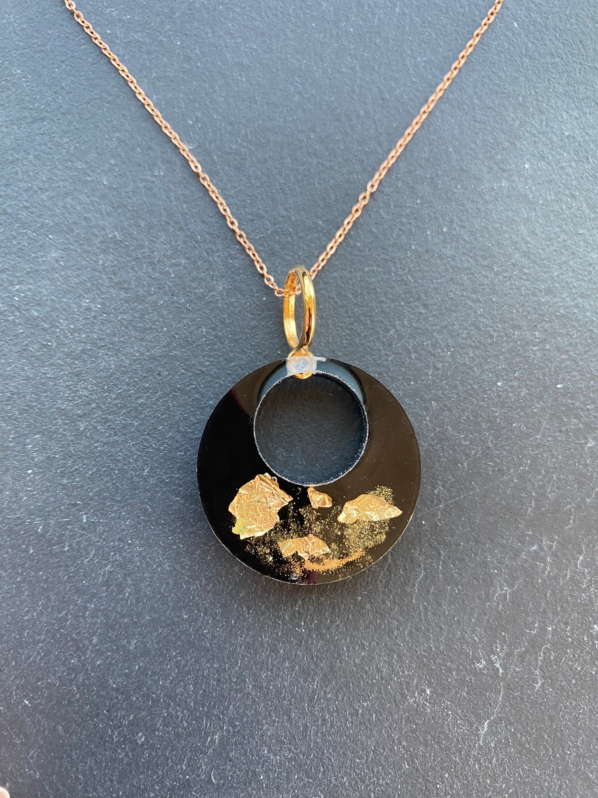 Ronde hanger met 18K bladgoud, zwart