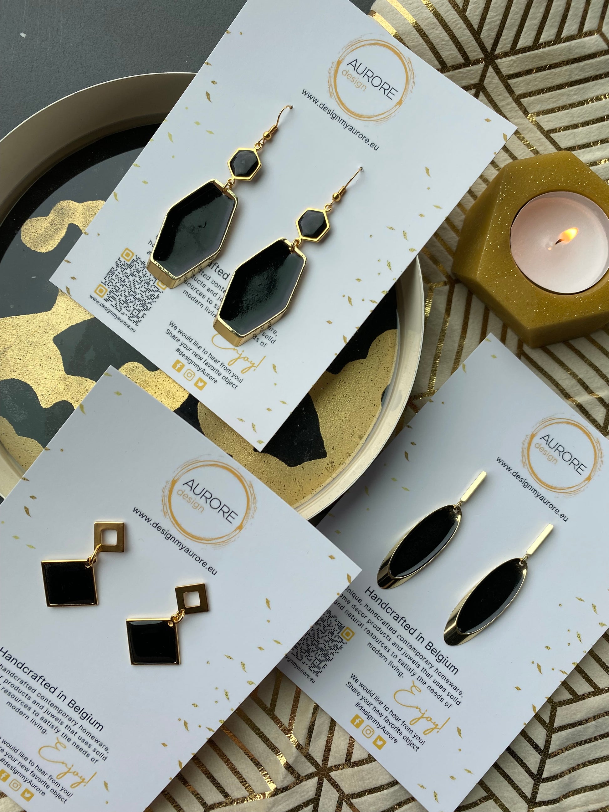 Met deze prachtige gouden oorbellen met zwarte resin inleg geef jij jouw outfit een stijlvolle en opvallende look. Een statement piece die jouw collectie nog mist!