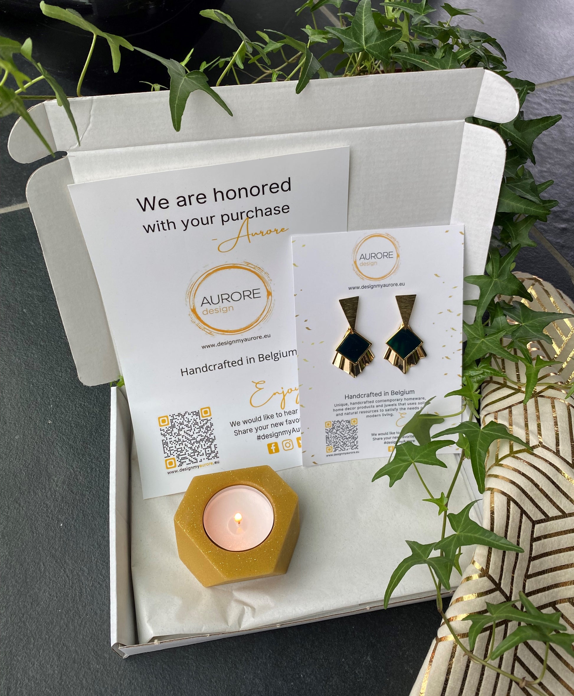 Deze geometrische oorbellen zijn gemaakt van hand gegoten milieuvriendelijke hars met jadekleur ondoorzichtig pigment.