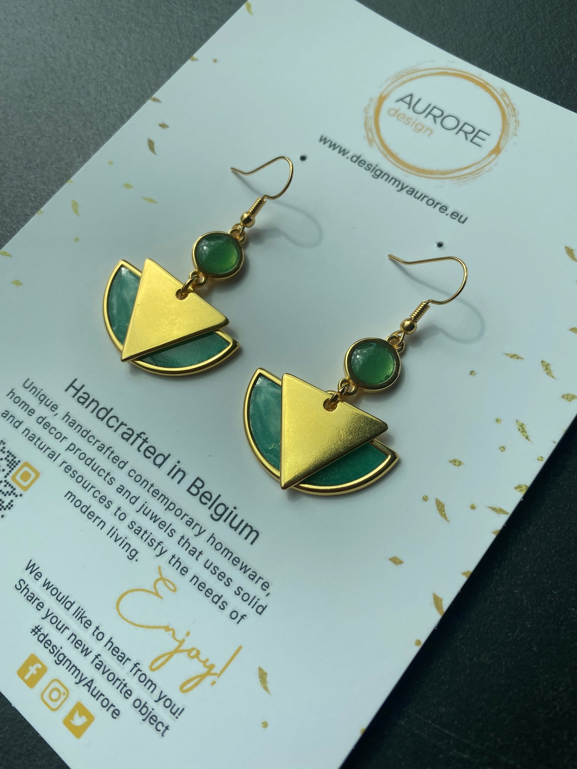 Deze geometrische oorbellen zijn gemaakt van hand gegoten milieuvriendelijke hars met ondoorzichtig pigment.