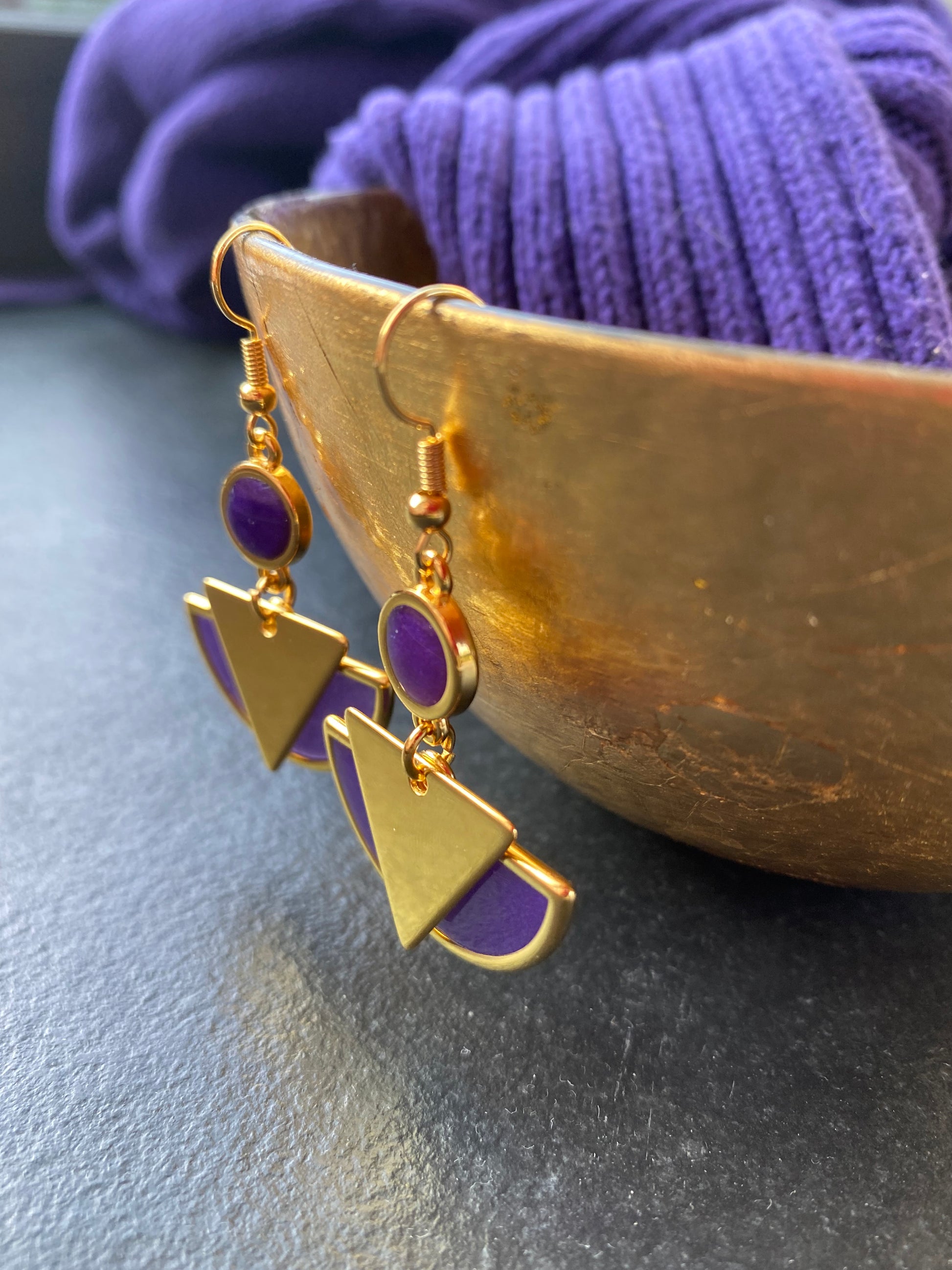 Deze geometrische oorbellen zijn gemaakt van hand gegoten milieuvriendelijke hars met ondoorzichtig pigment.