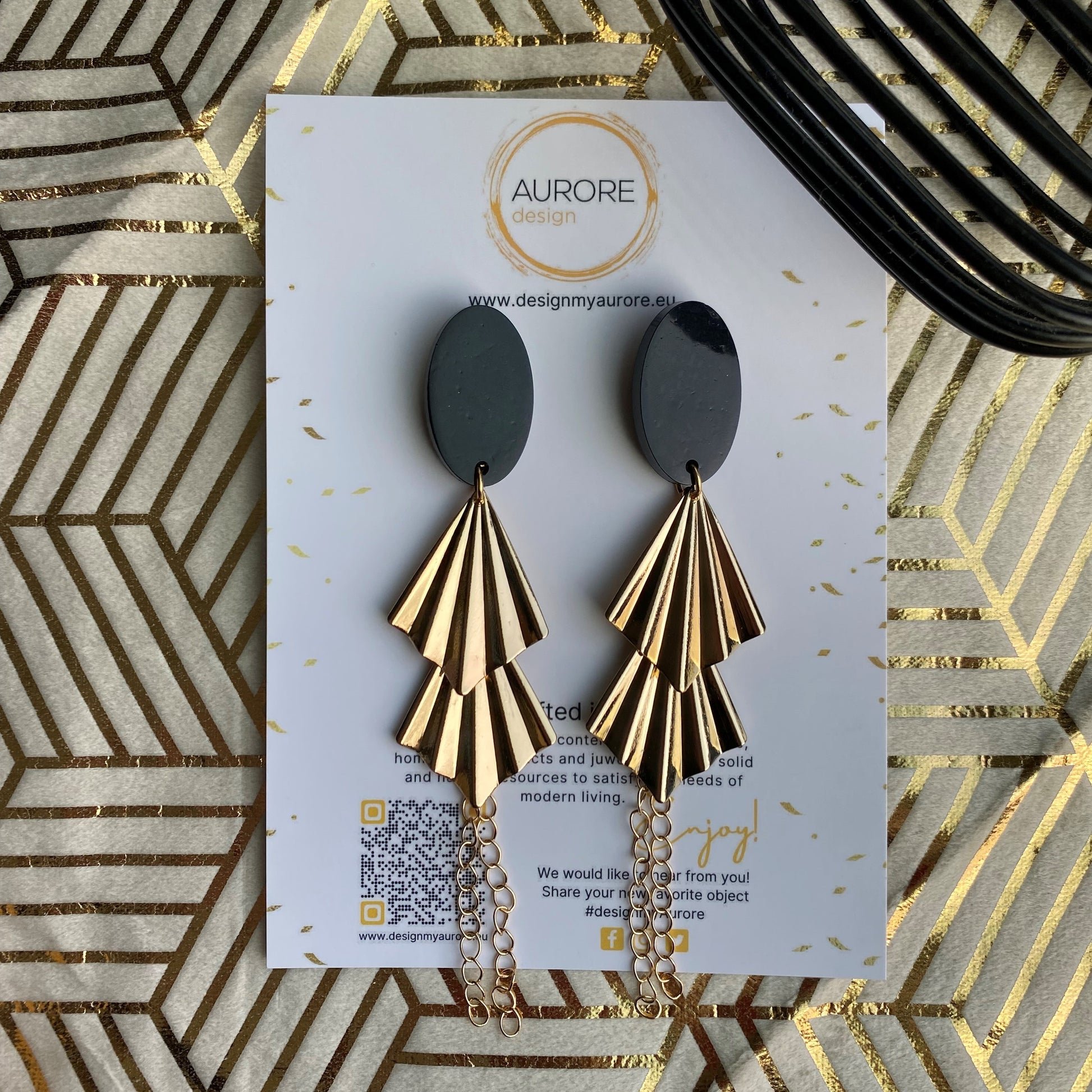 Deze geometrische oorbellen zijn gemaakt van hand gegoten milieuvriendelijke hars met zwart ondoorzichtig pigment.