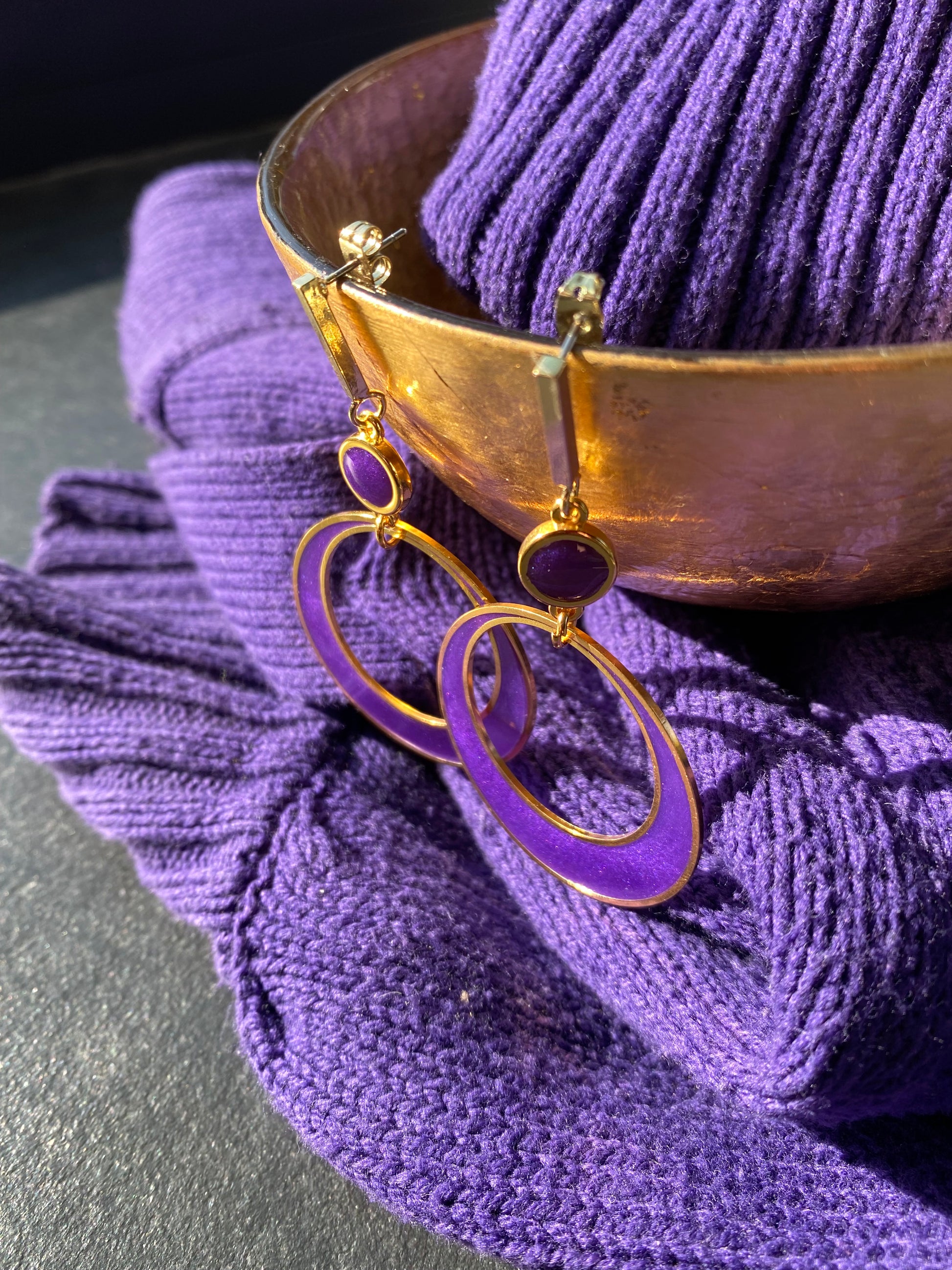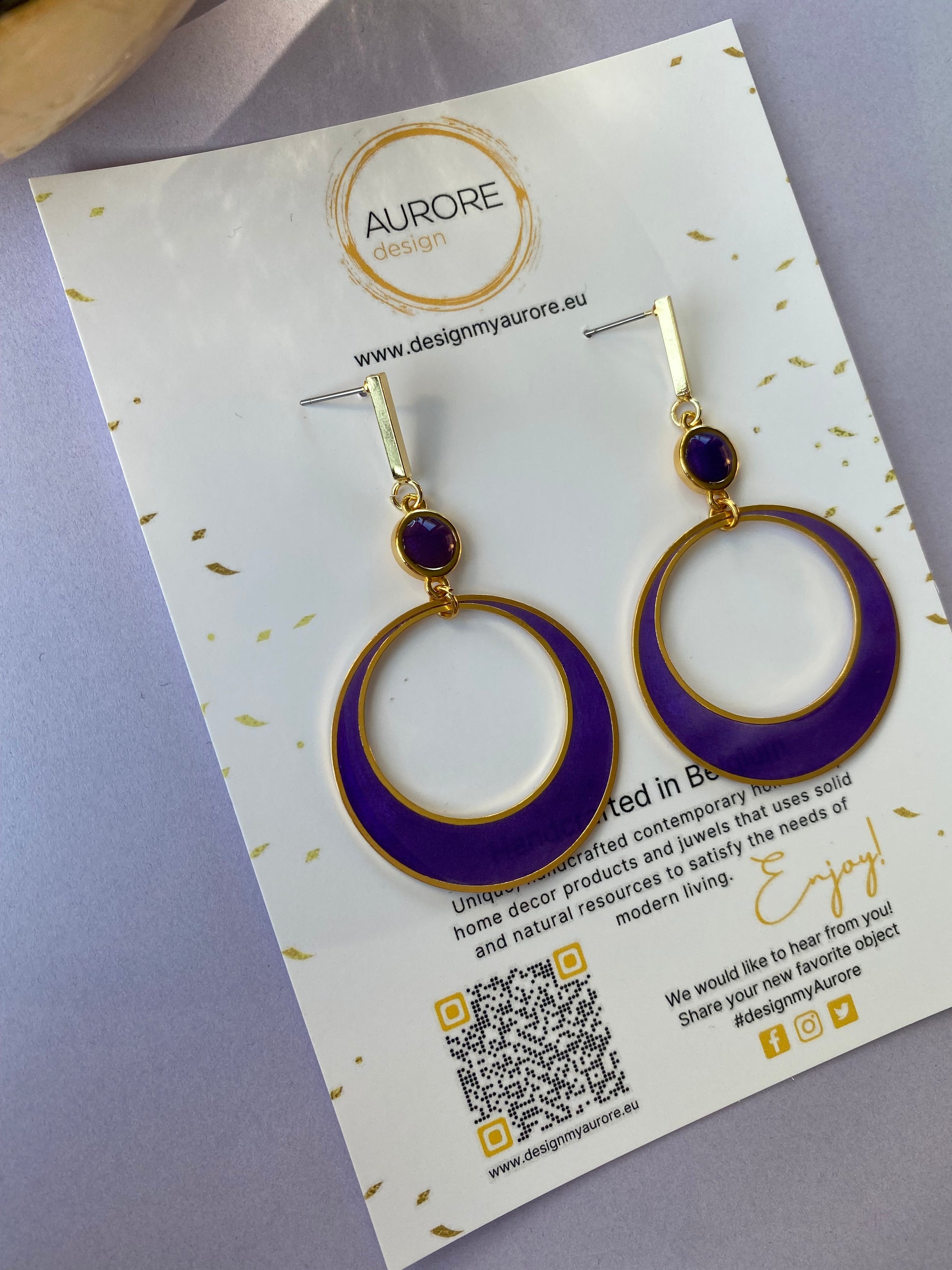 Goudkleurige hoepel oorstekers - Whoop Paars