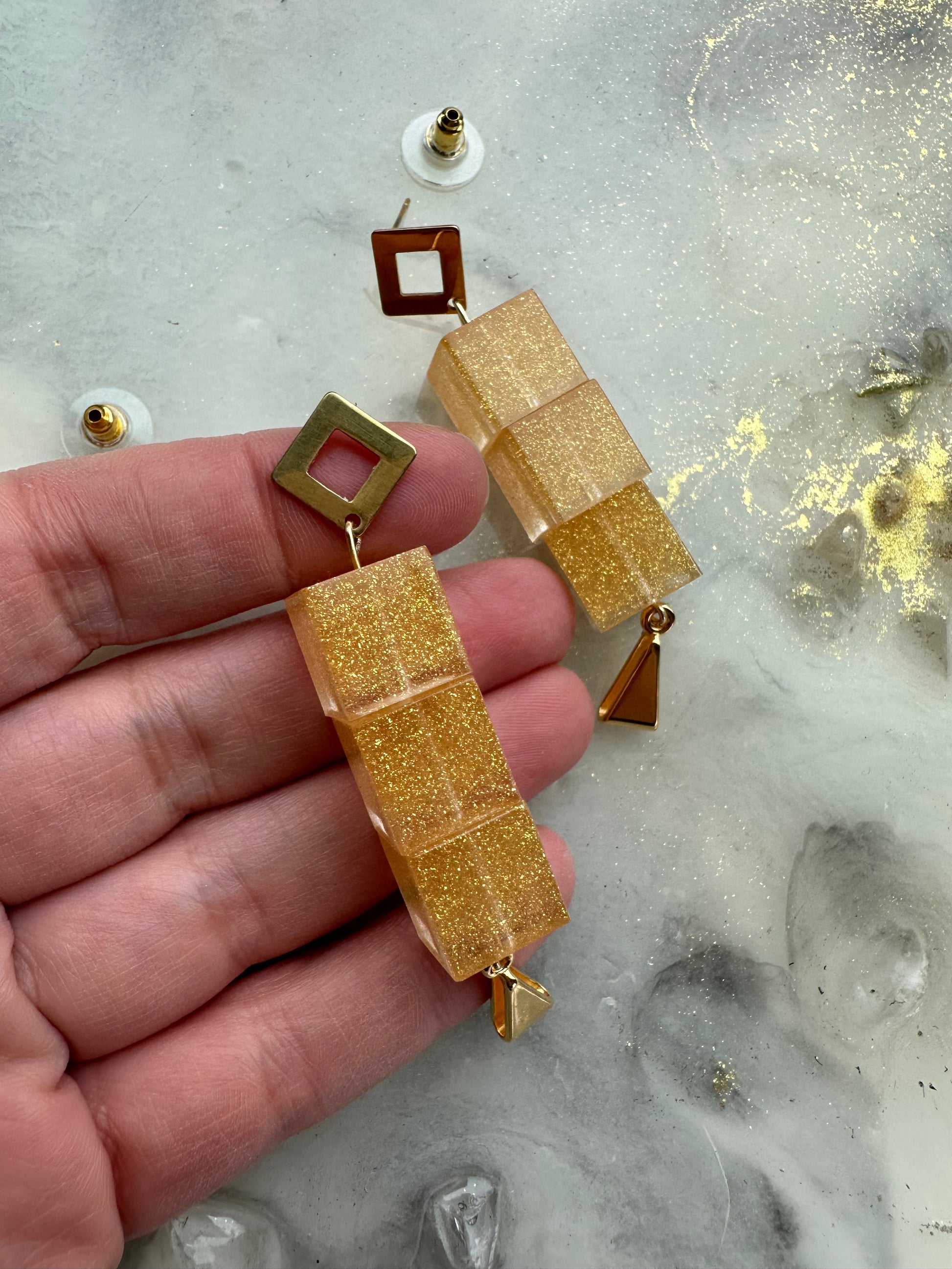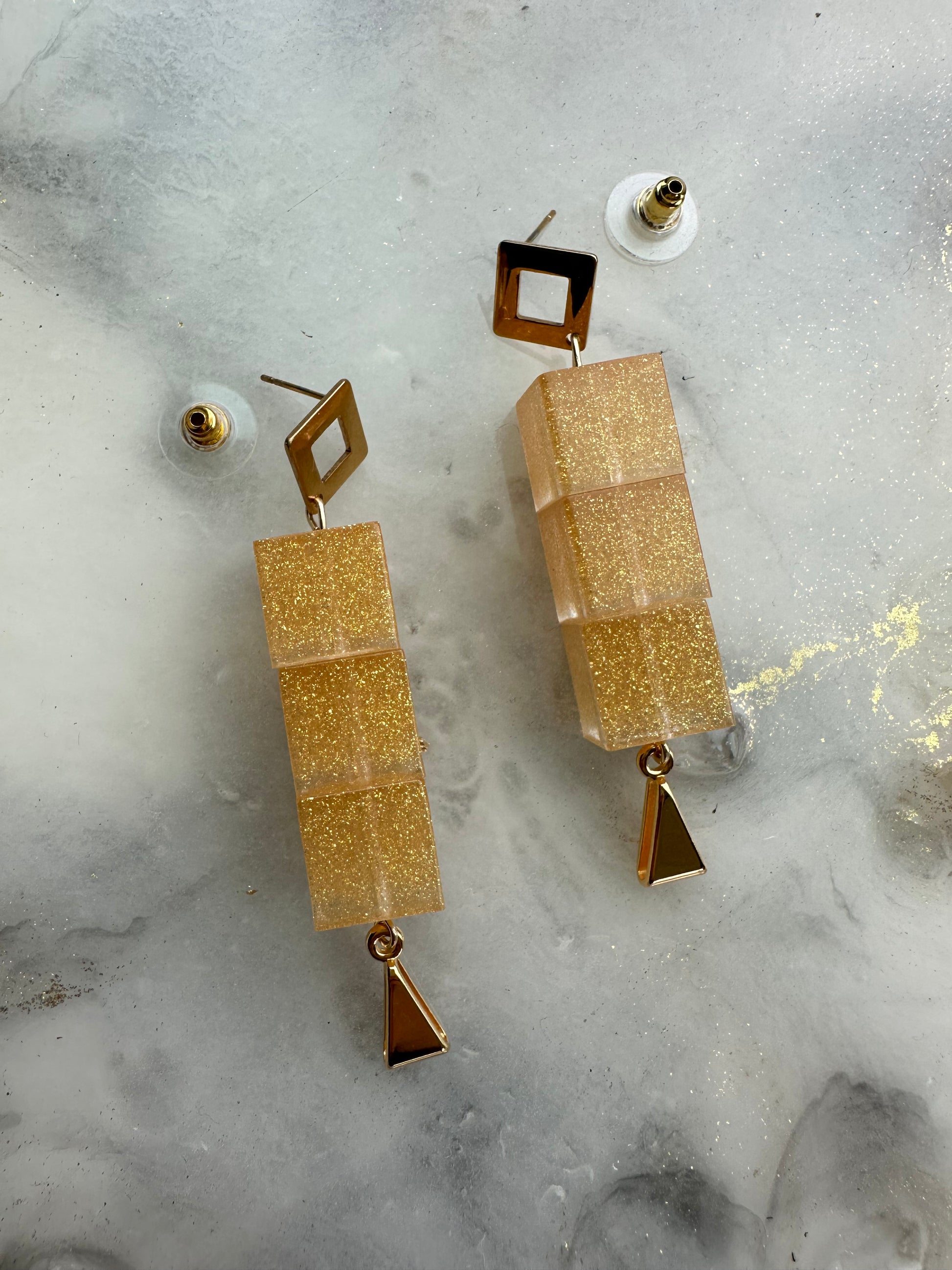 Goudkleurige oorbellen met gestapelde kubussen