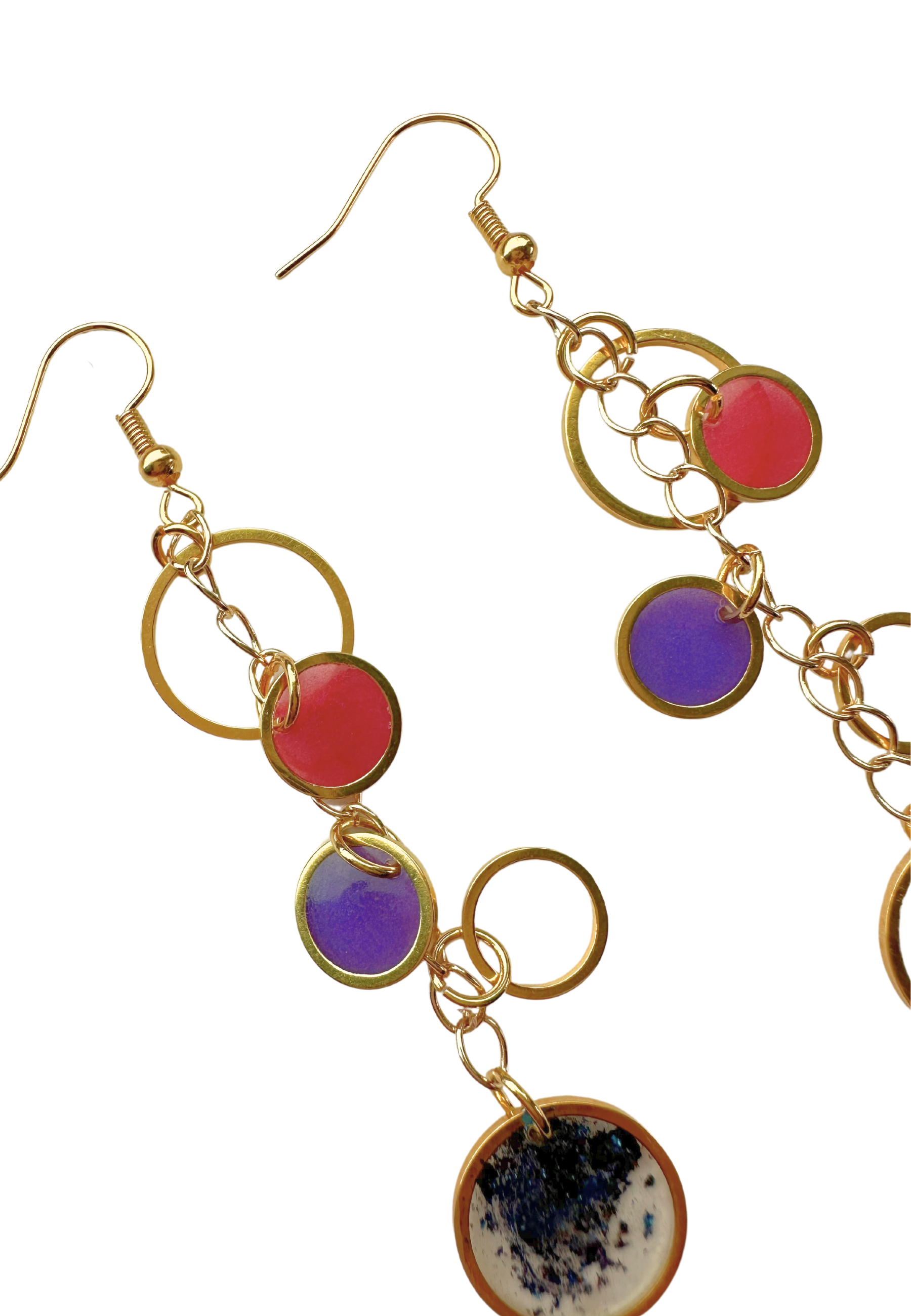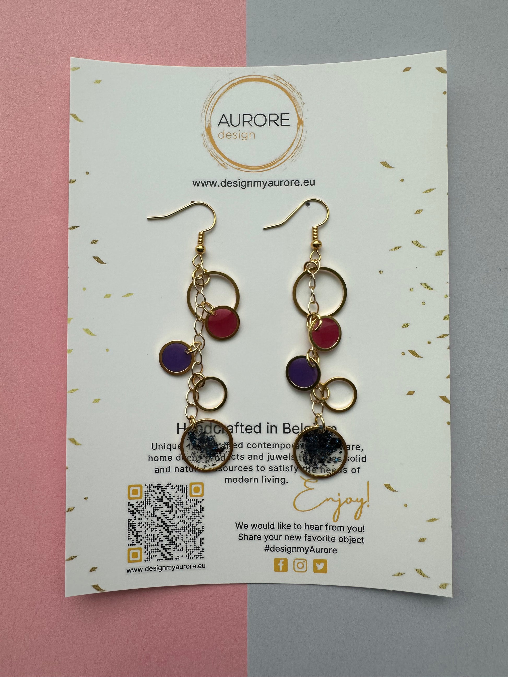 Met deze opvallende en schitterende druppelvormige oorhangers valt u overdag en 's avonds gegarandeerd op. Deze moderne versies van Boheems kralenwerk bevatten prachtige paarse en roze elementen die zijn gezet op een klassieke zetting met goudkleurige toplaag op een fijne ketting. Draag ze met opgestoken haar.