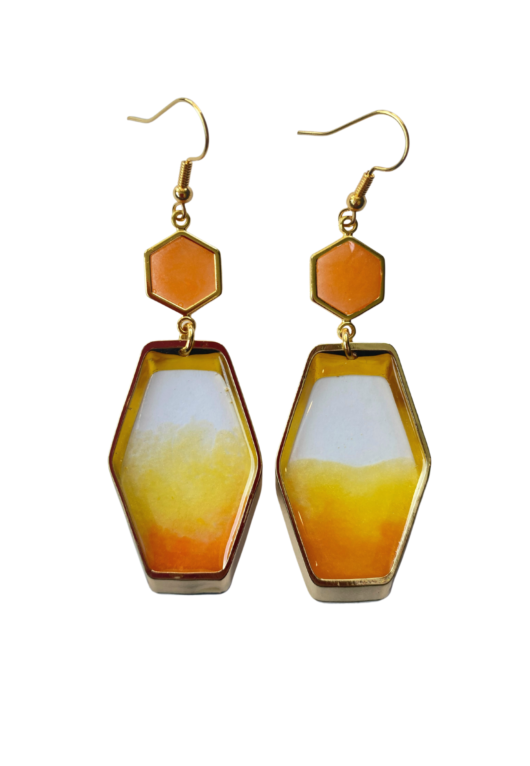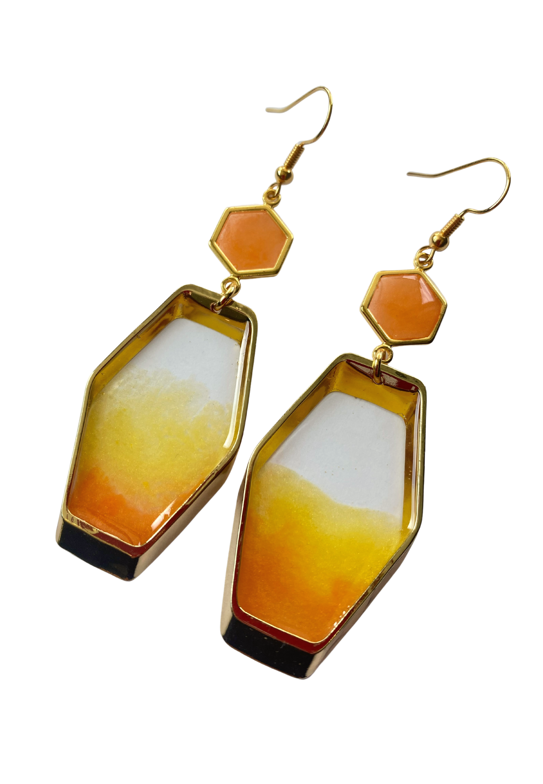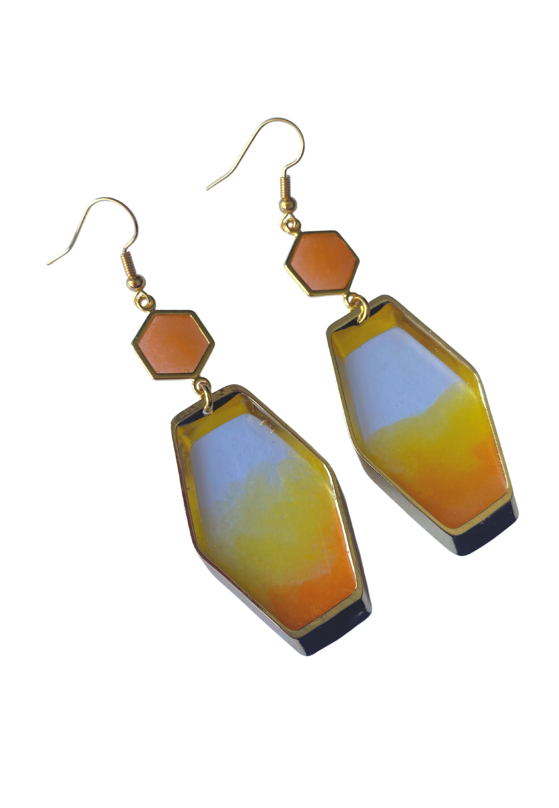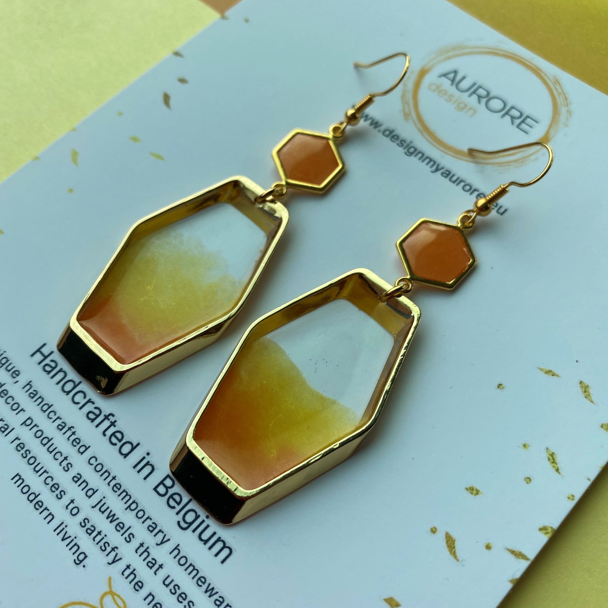 Ook deze oorbellen zijn handgemaakt, kleine variaties in de tekening kunnen voorkomen. Deze oorbellen maken onderdeel uit van de Hexa lijn en komen in verschillende kleuren.