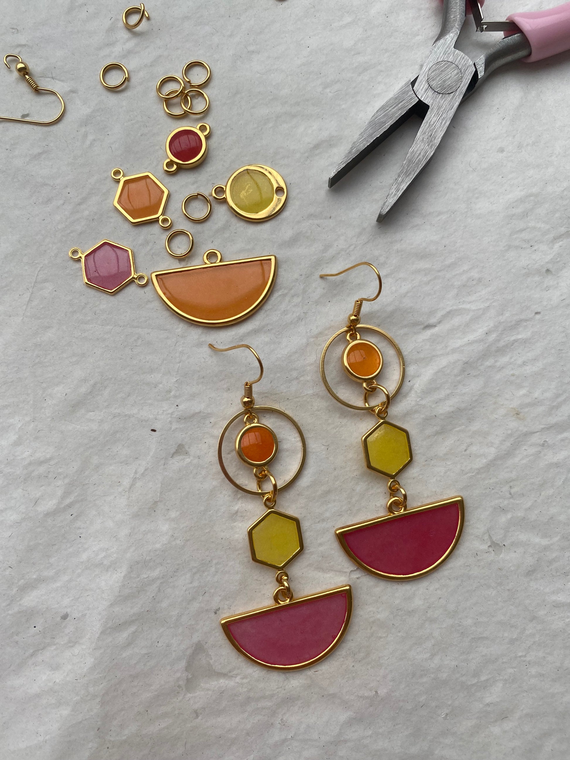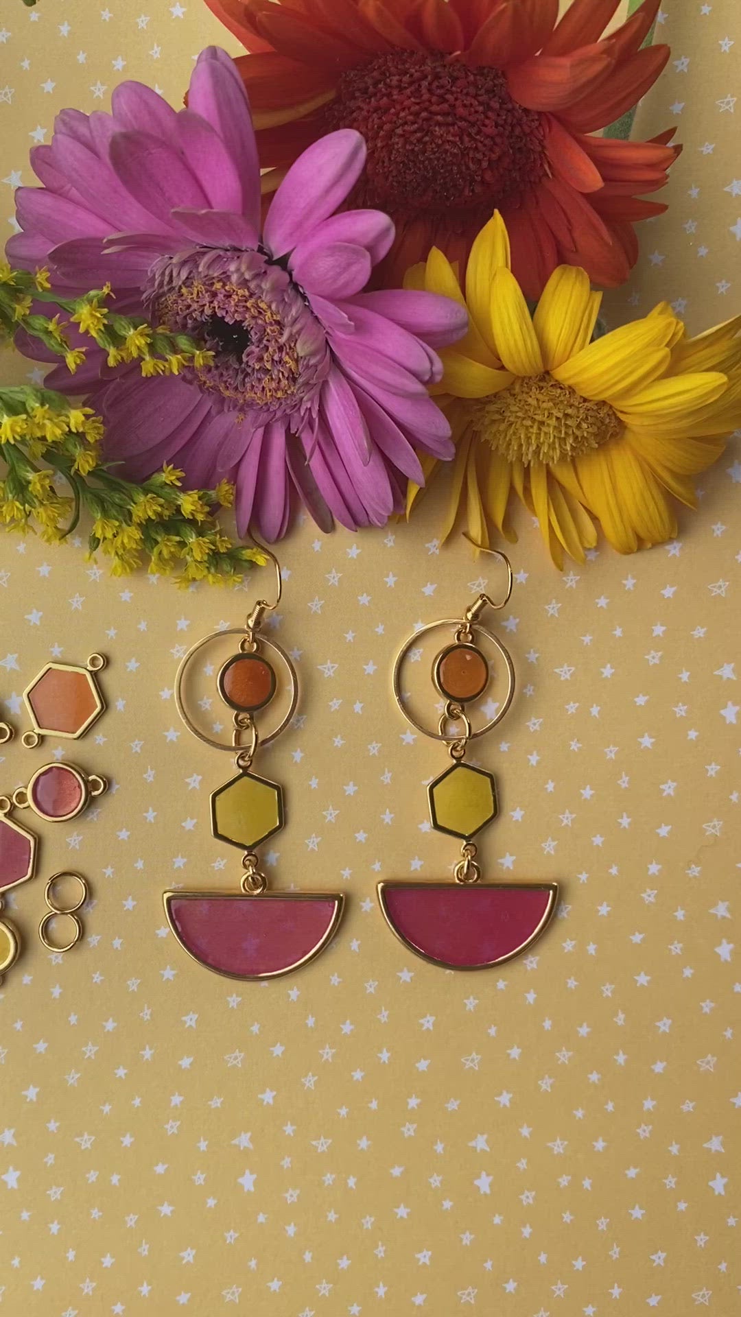 Deze unieke oorbellen kun je zowel overdag als 's avonds dragen voor een opvallende look. Deze set maakt indruk met een speelse combinatie van op druppels geïnspireerde gekleurde elementen en in elkaar grijpende kettingen met goudkleurige toplaag. Draag ze als volledige set of combineer ze met Lilia oorhangers.