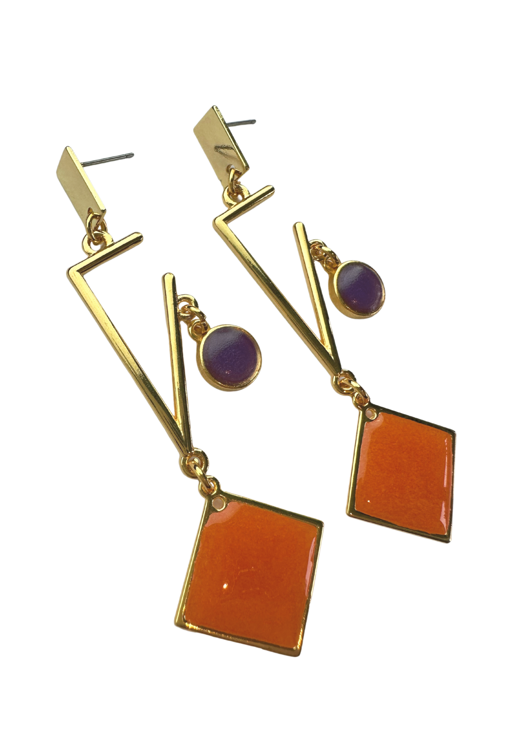 Geometrische oorbellen met meerkleurige stenen - Oranje