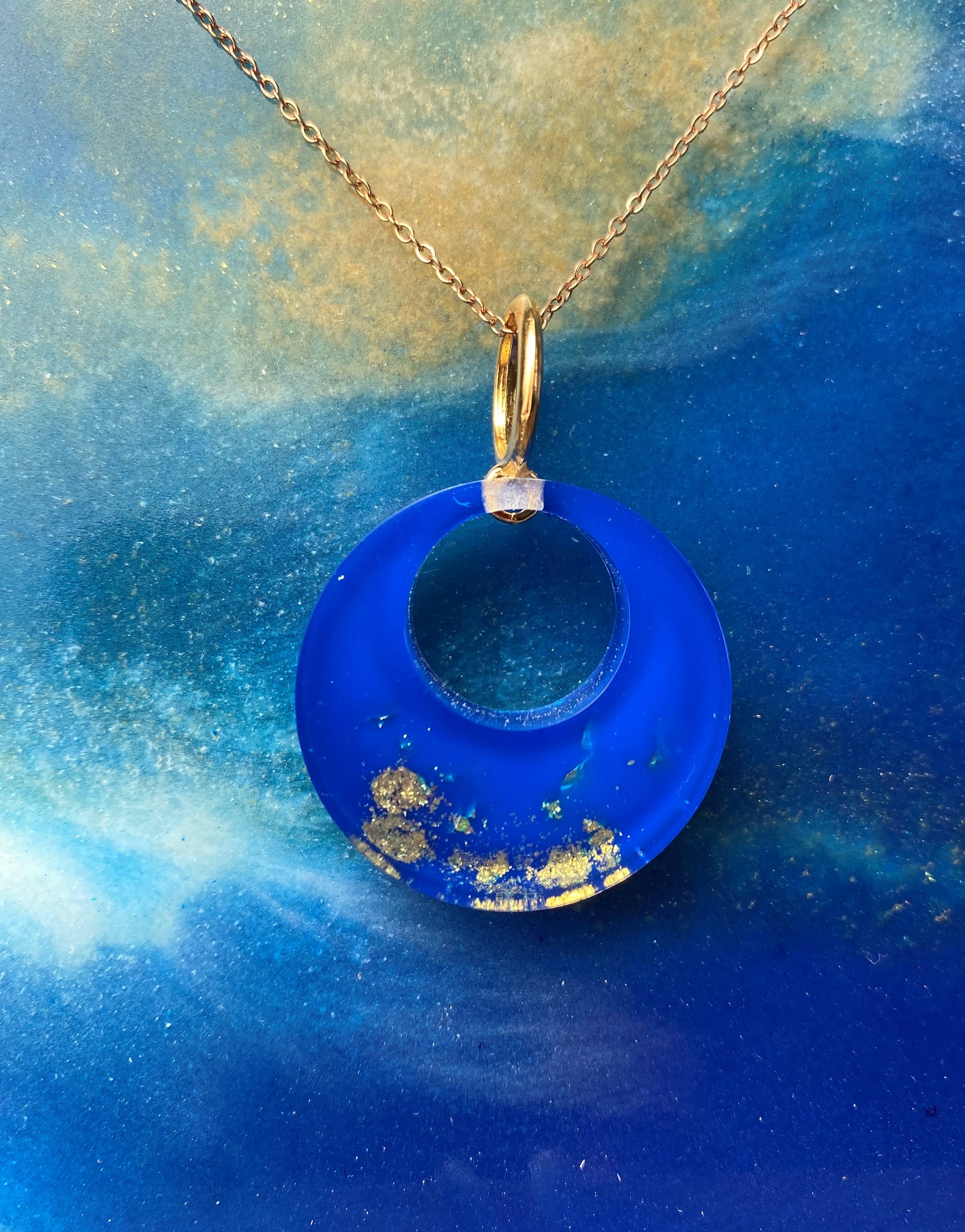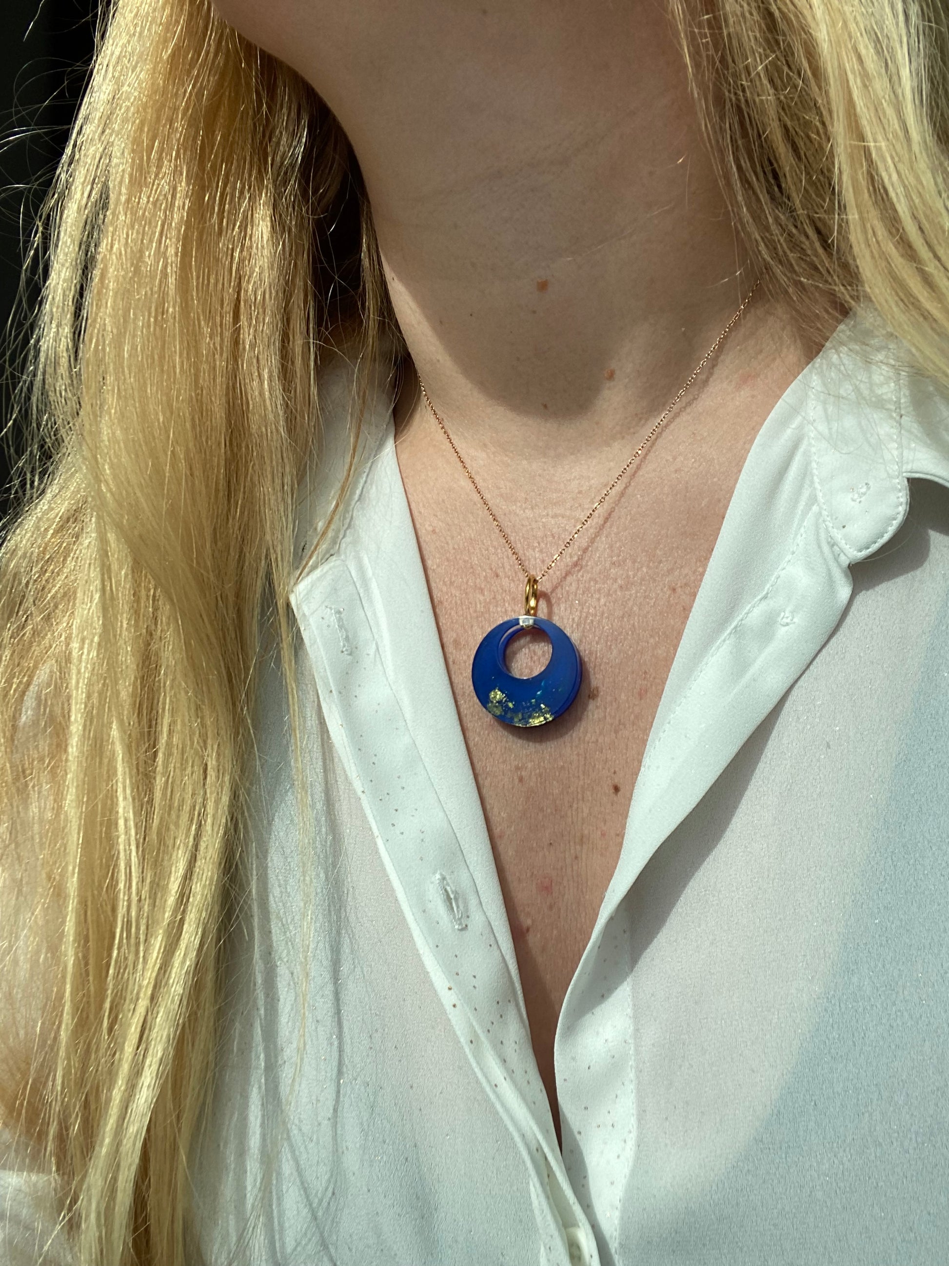 Ronde hanger in koningsblauw met 18K goudvlokken