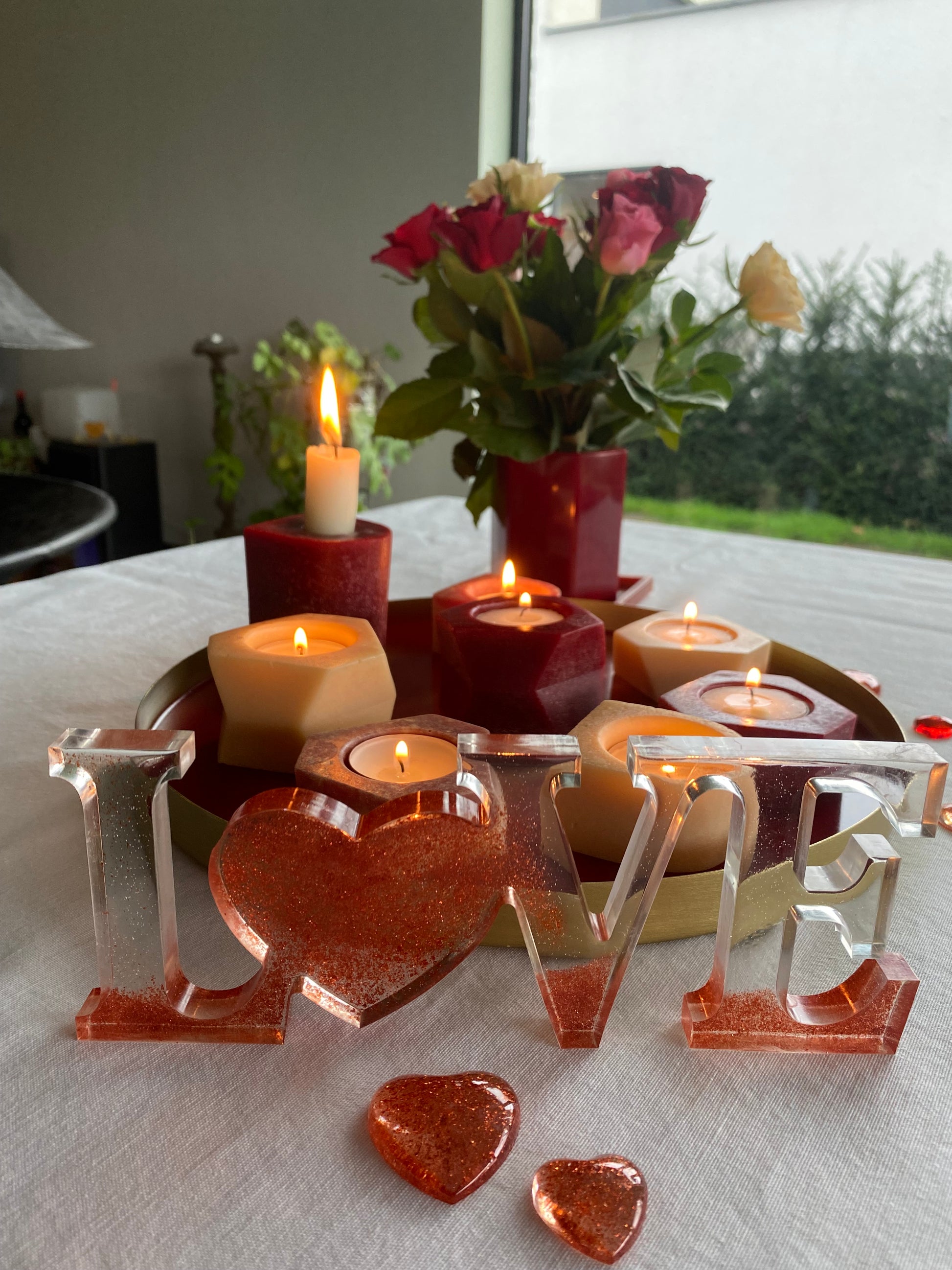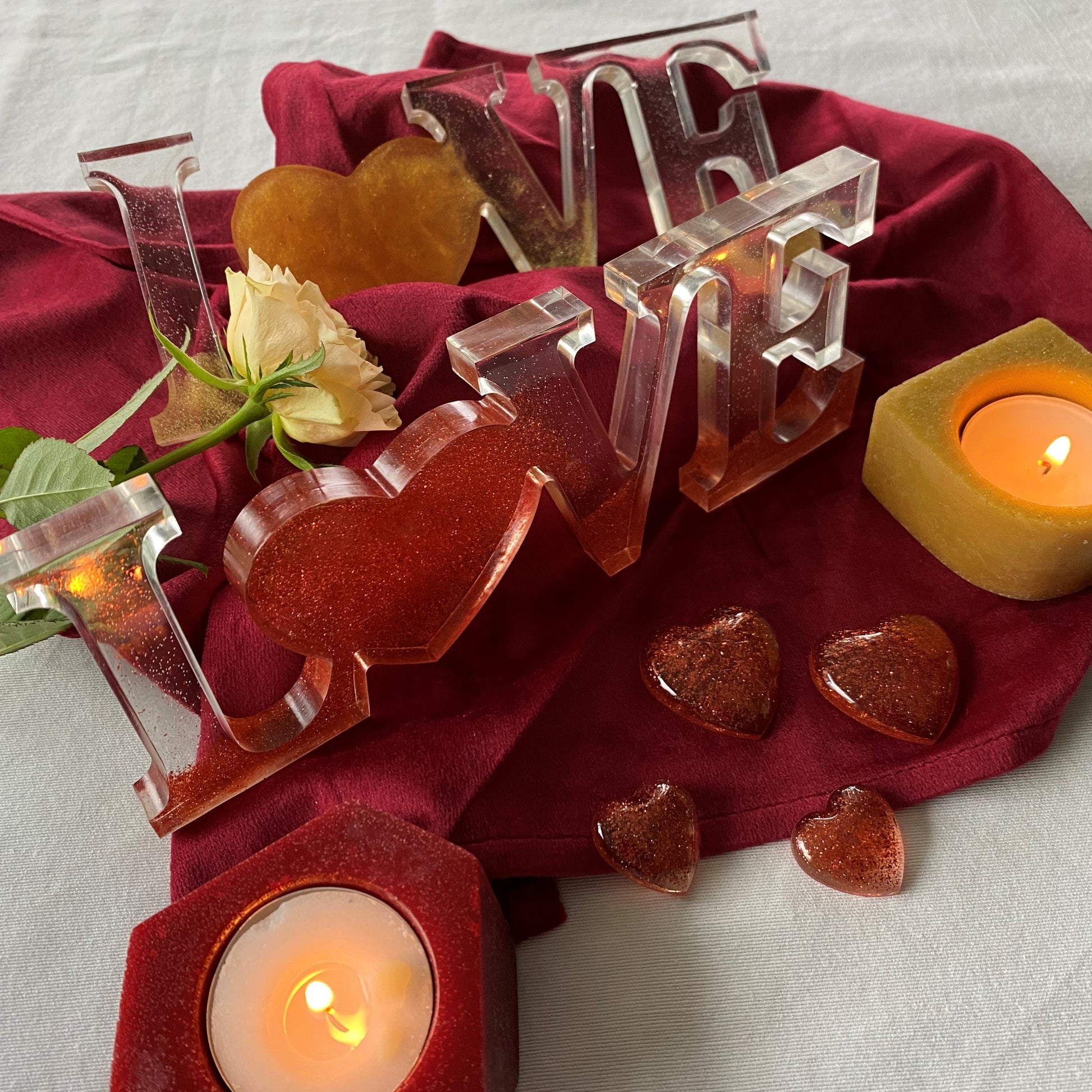 Love is in the air ... Mooi liefdesteken handgemaakt met hars, verkrijgbaar in 2 kleuren. Kan op zichzelf staan als display in elke ruimte. Display bestaat uit 1 stuk.
