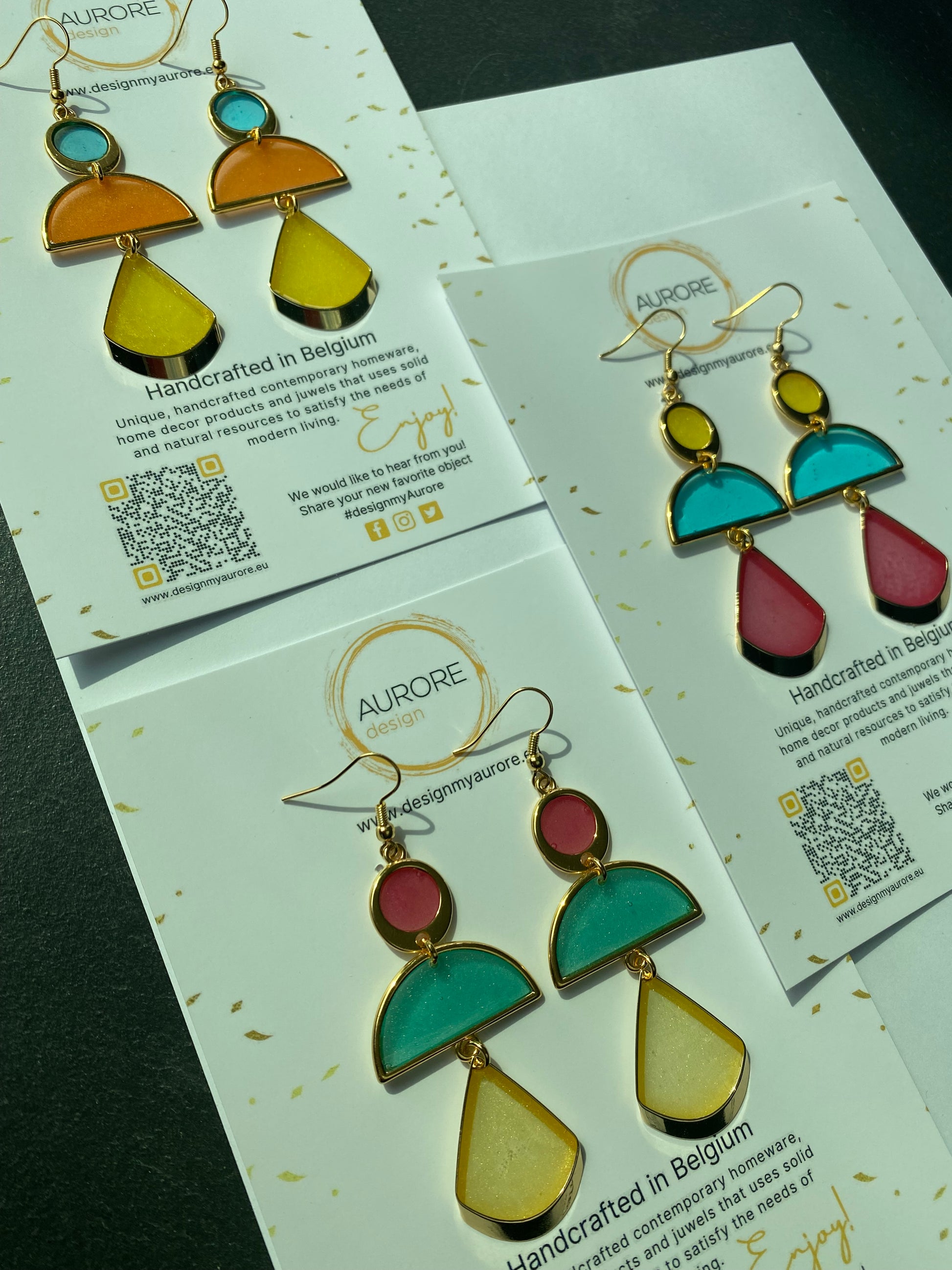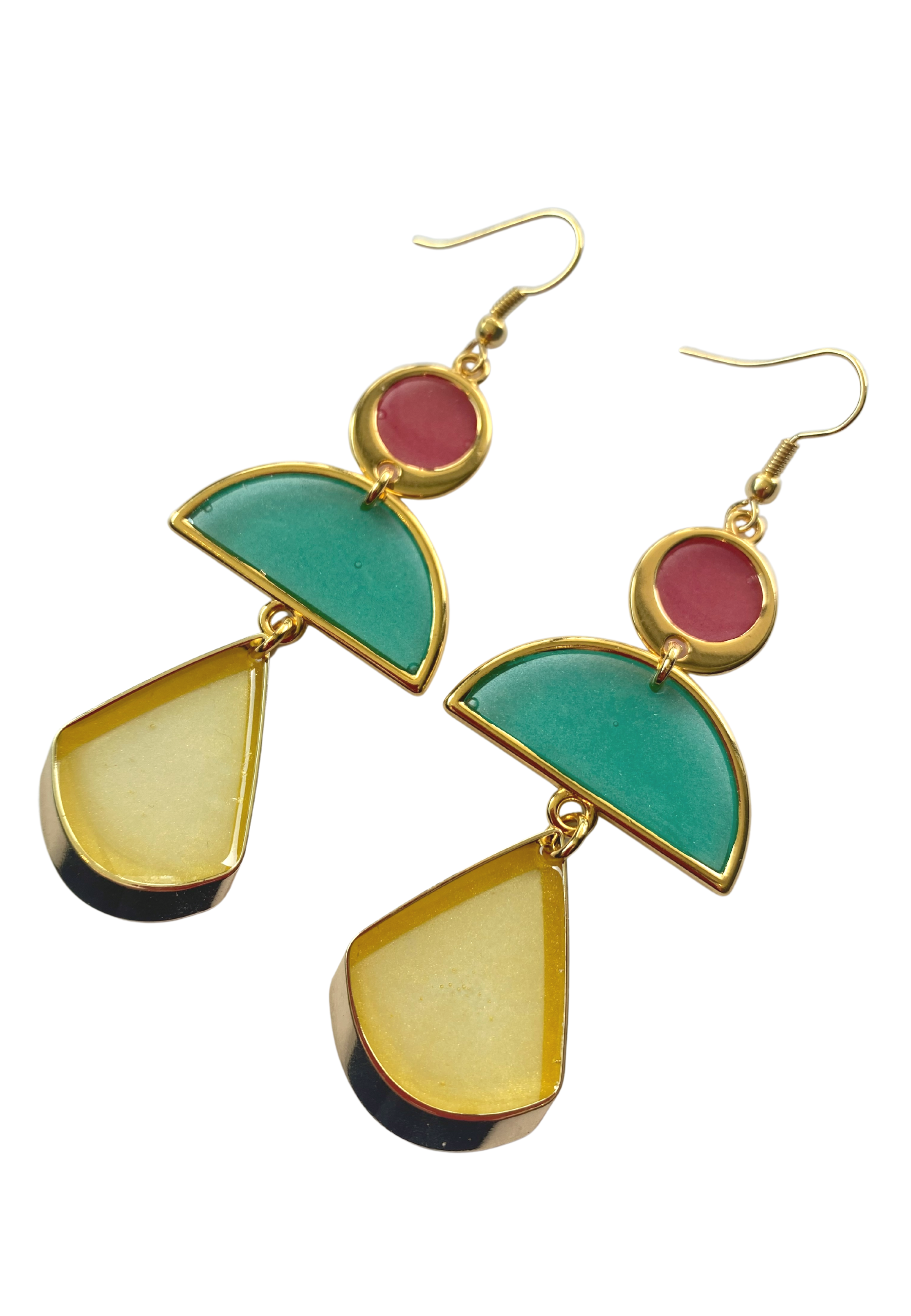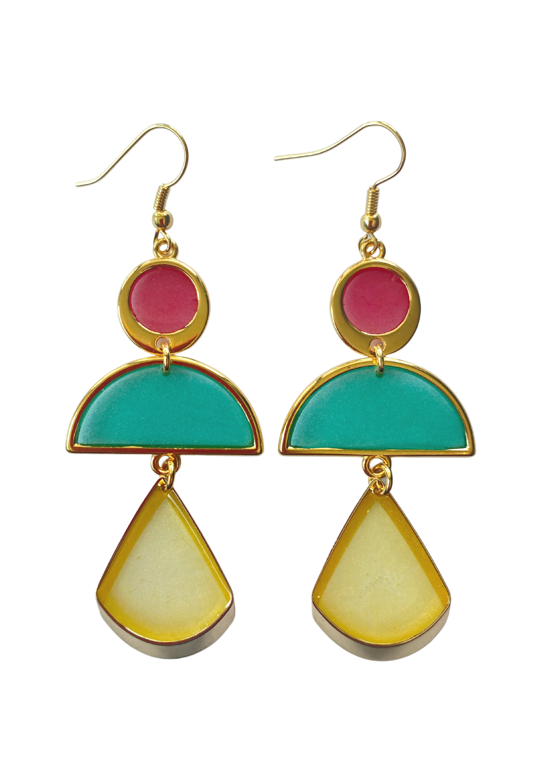 Deze oorstekers zijn gebaseerd op kroonluchteroorstekers maar dan in een modern jasje gestoken. Ze zijn vakkundig vervaardigd van verschillende vormen in rijke tinten. De oorsieraden zijn afgewerkt met een haakdetail met een goud kleurtoon en een enkel druppel aan het uiteinde. Draag met een strak pak en eenvoudige kledingstukken om de minimalistische silhouetten tot hun recht te laten komen. Deze oorsieraden is beschikbaaar in verschillende kleuren.