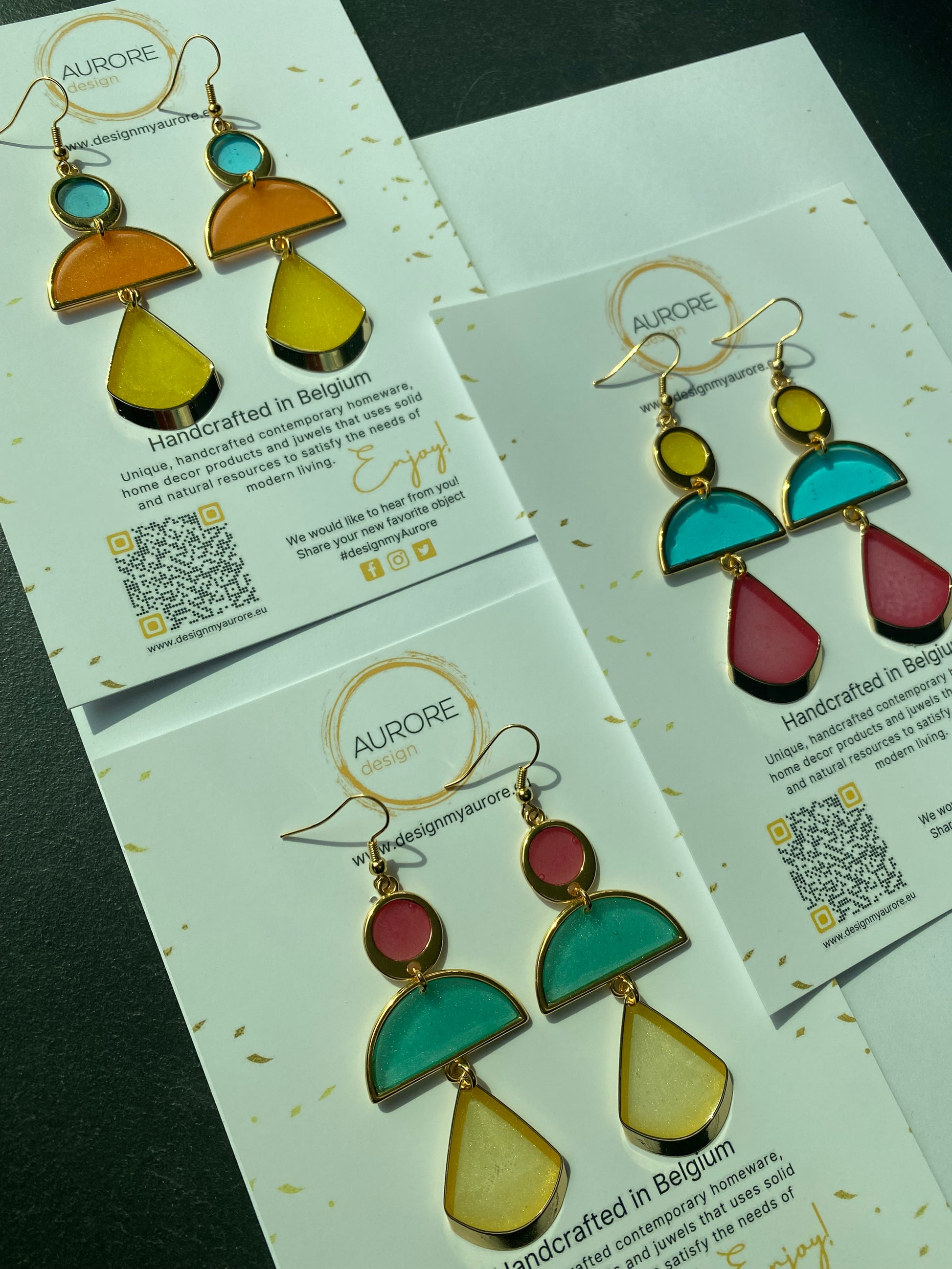 Deze oorstekers zijn gebaseerd op kroonluchteroorstekers maar dan in een modern jasje gestoken. Ze zijn vakkundig vervaardigd van verschillende vormen in rijke tinten. De oorsieraden zijn afgewerkt met een haakdetail met een goud kleurtoon en een enkel druppel aan het uiteinde. Draag met een strak pak en eenvoudige kledingstukken om de minimalistische silhouetten tot hun recht te laten komen. Deze oorsieraden is beschikbaaar in verschillende kleuren.