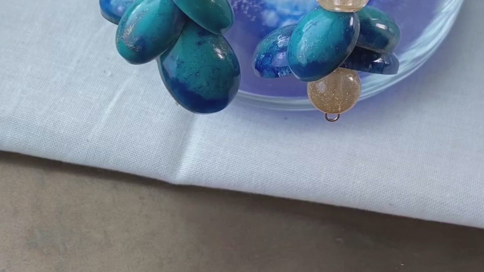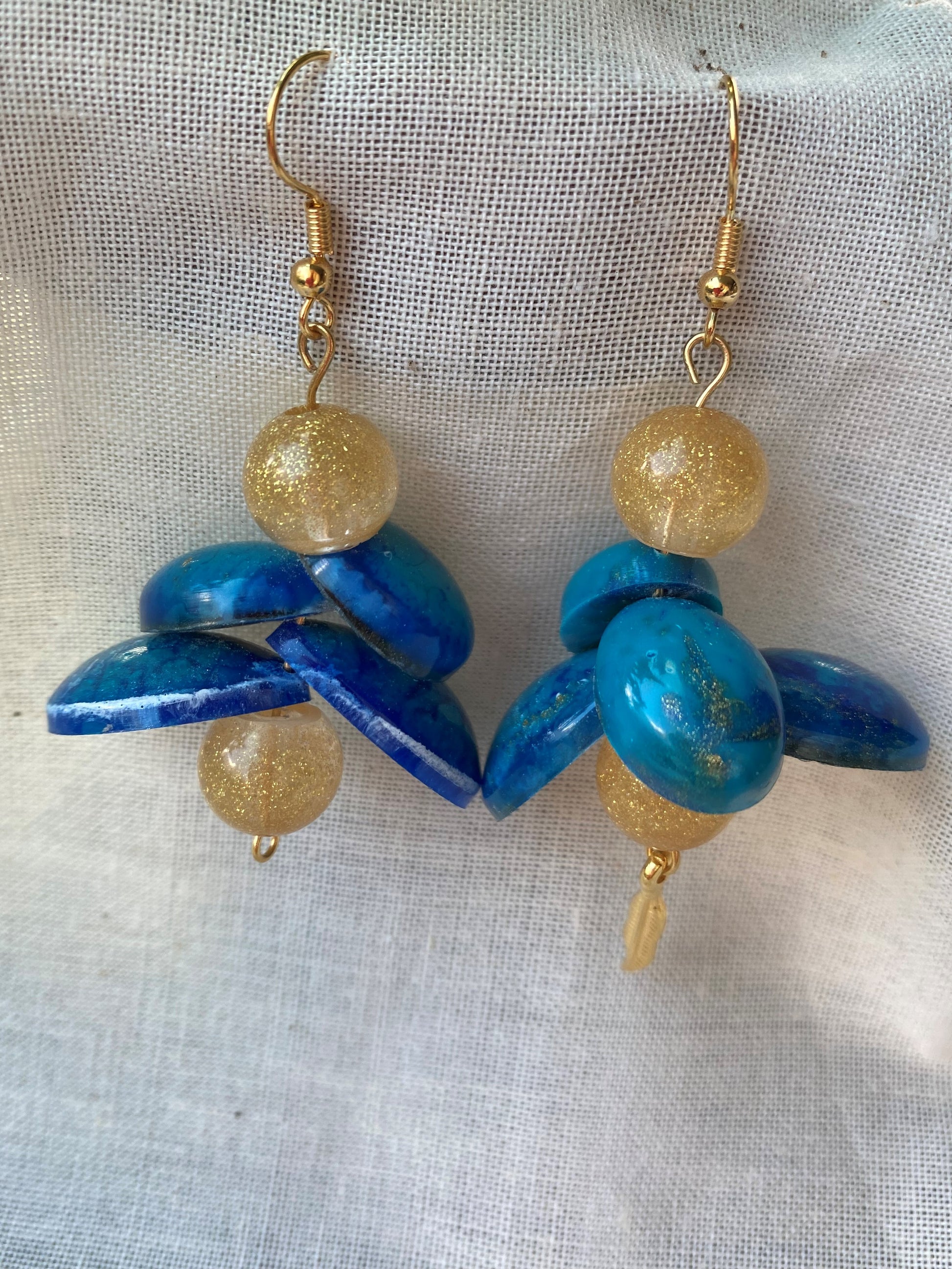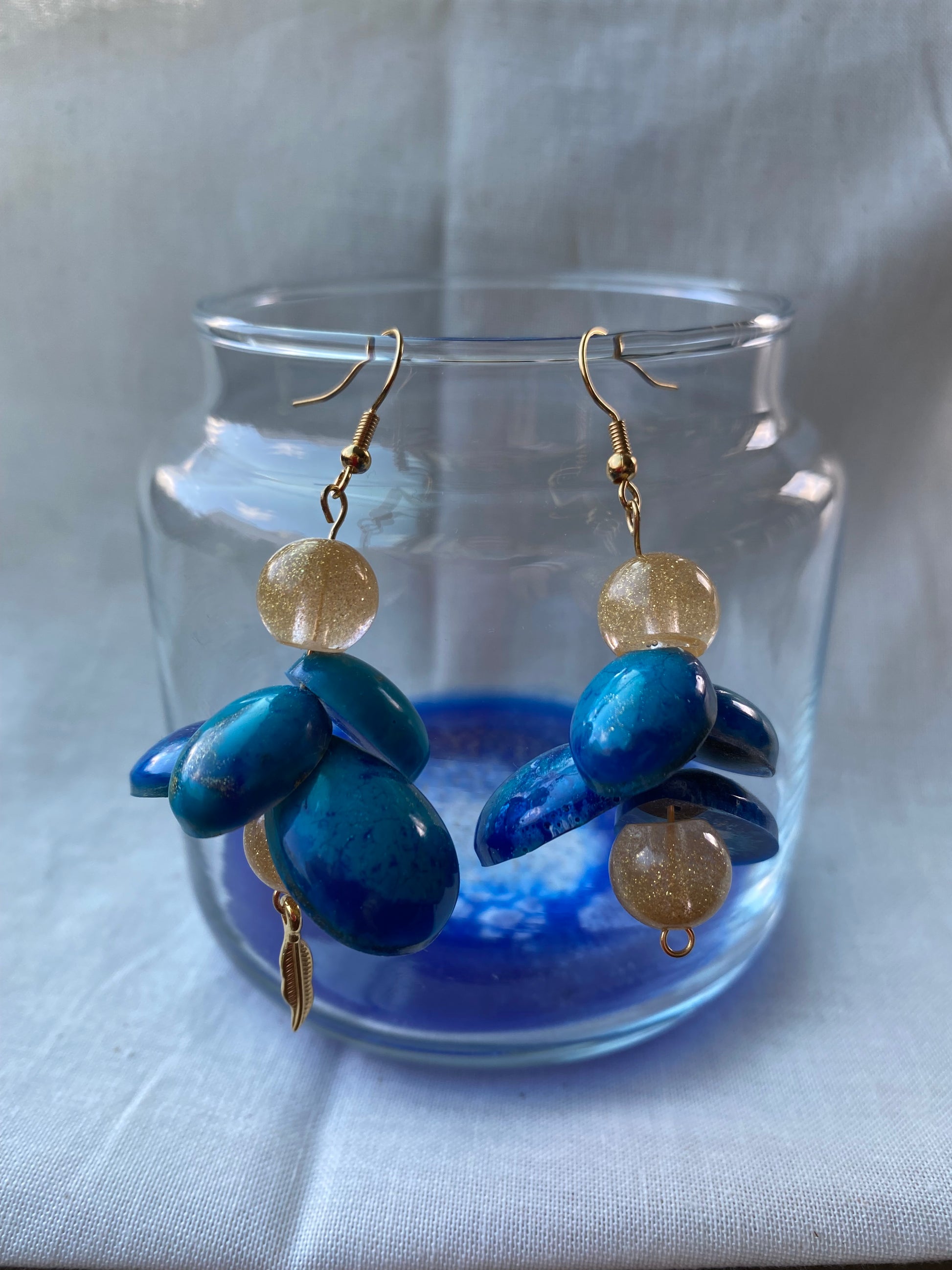 Natuur geïnspireerde goud blauwe oorbellen met organische vormen
