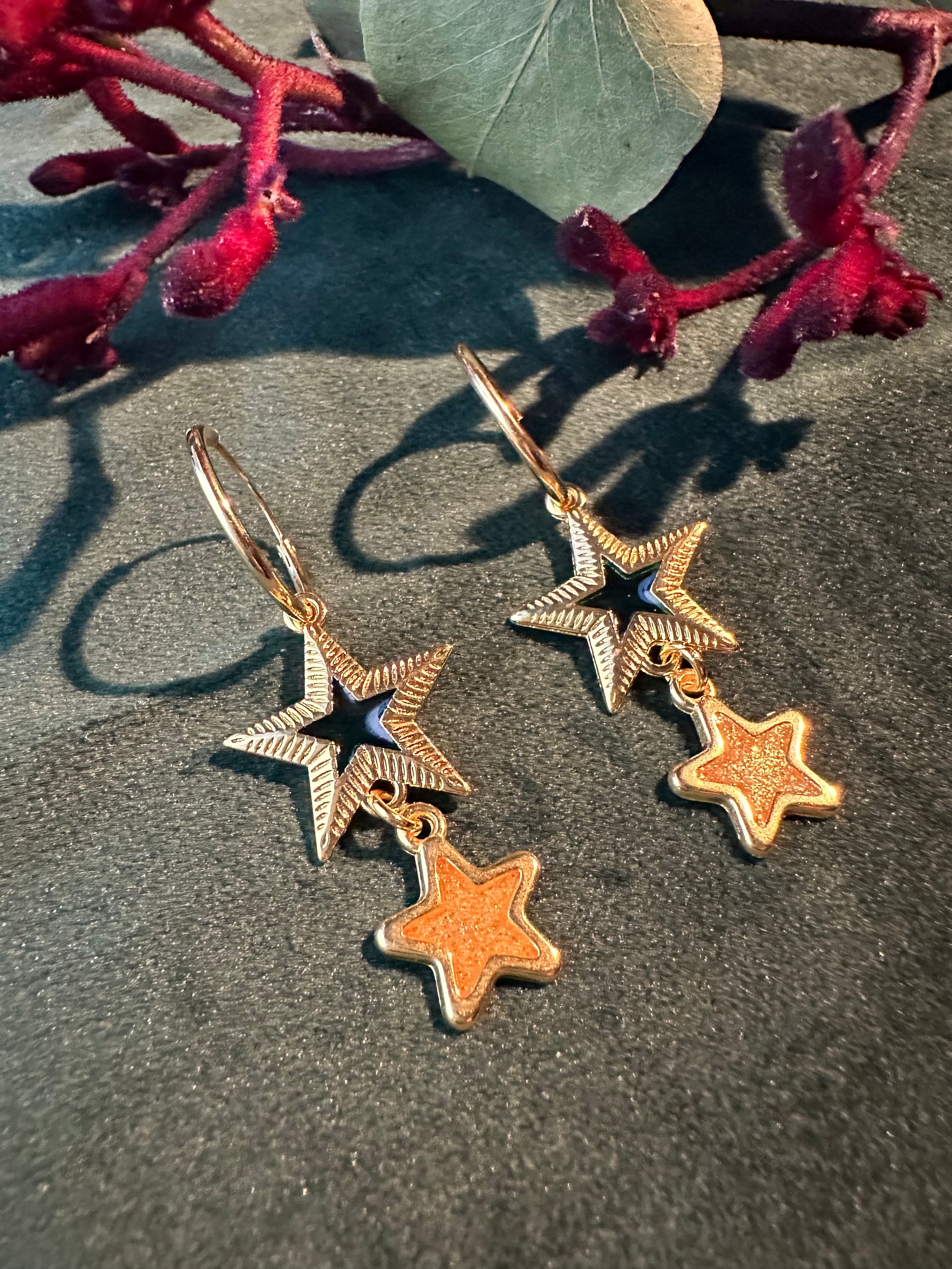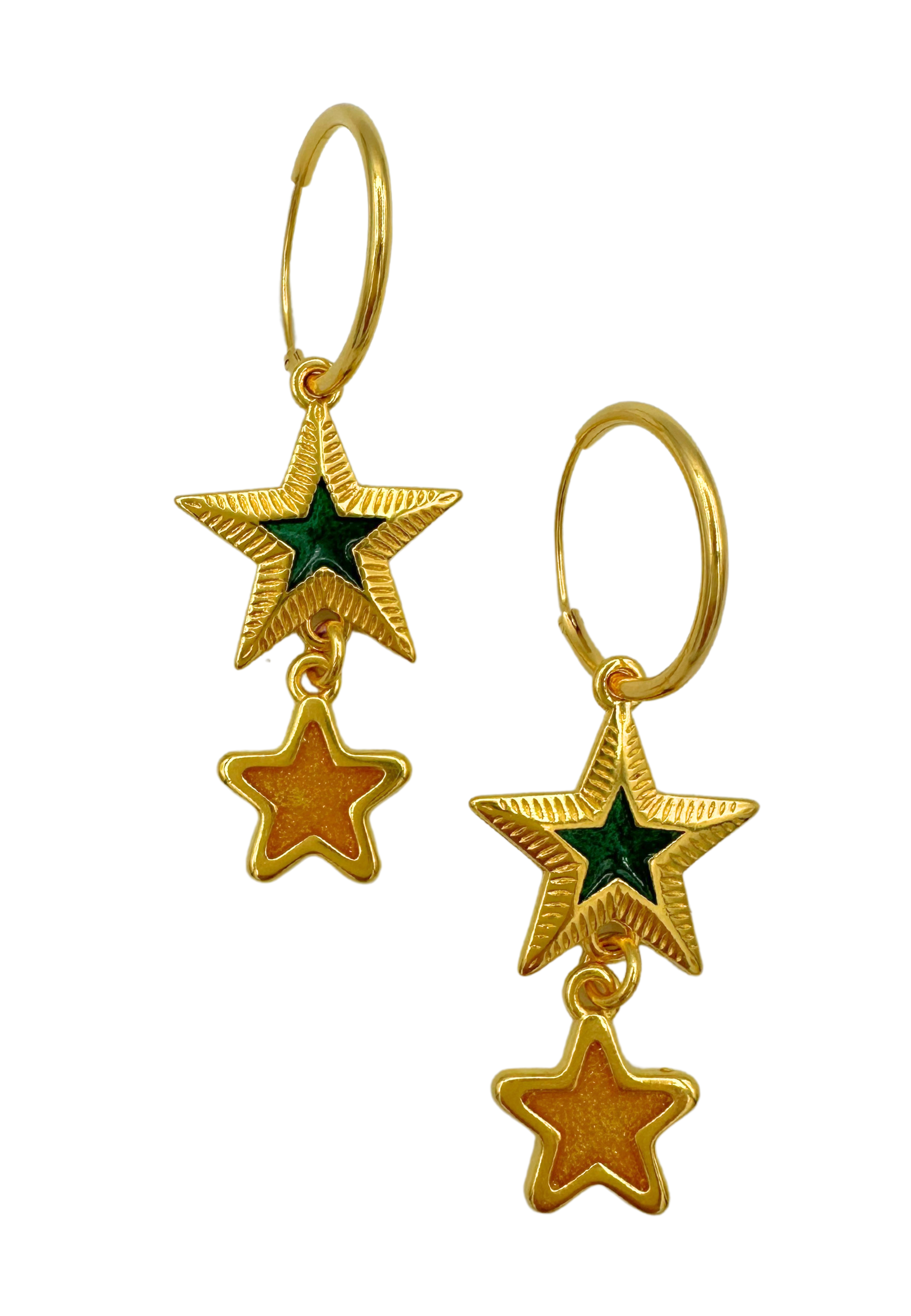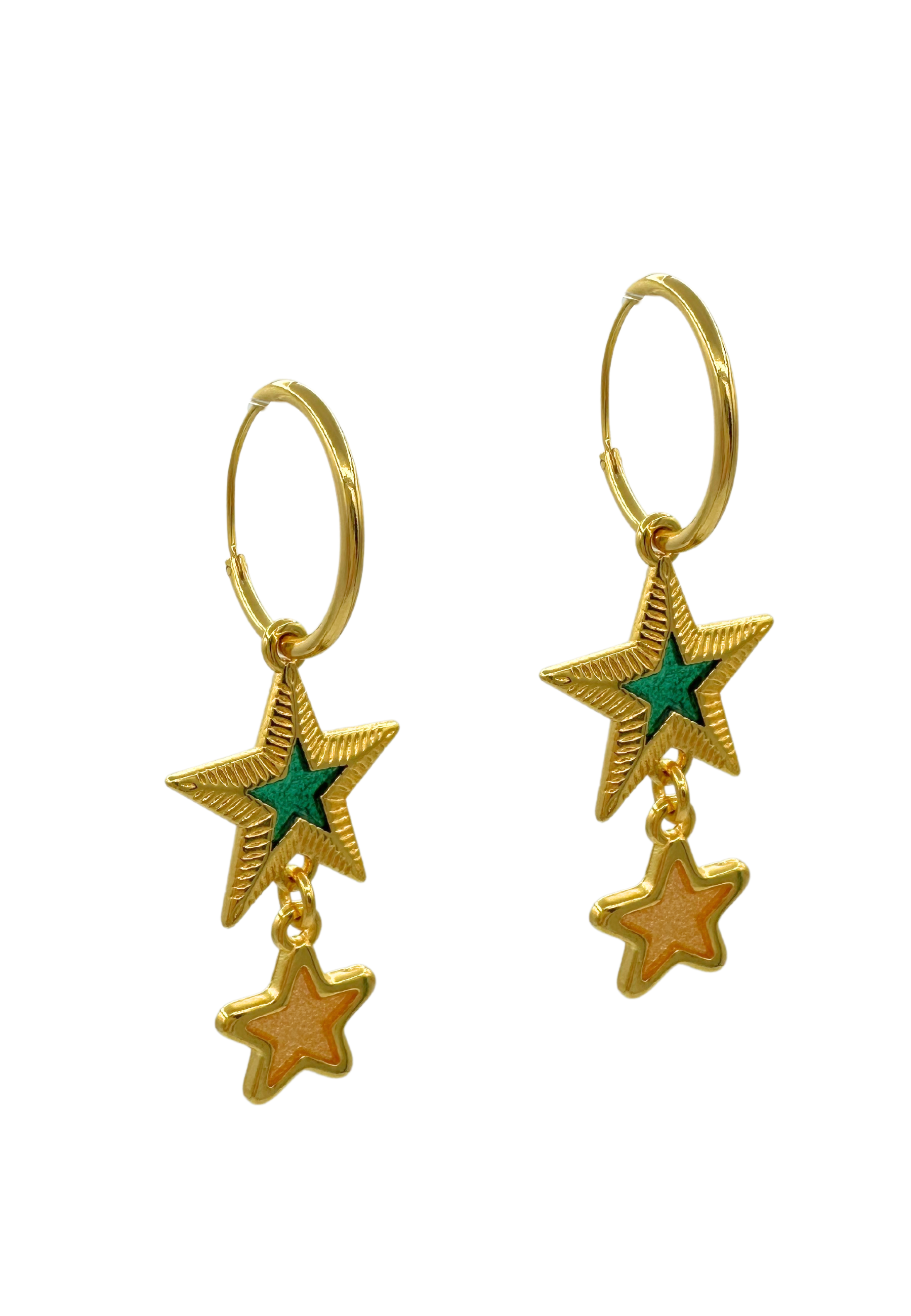 Oorringen met groene en gouden sterren